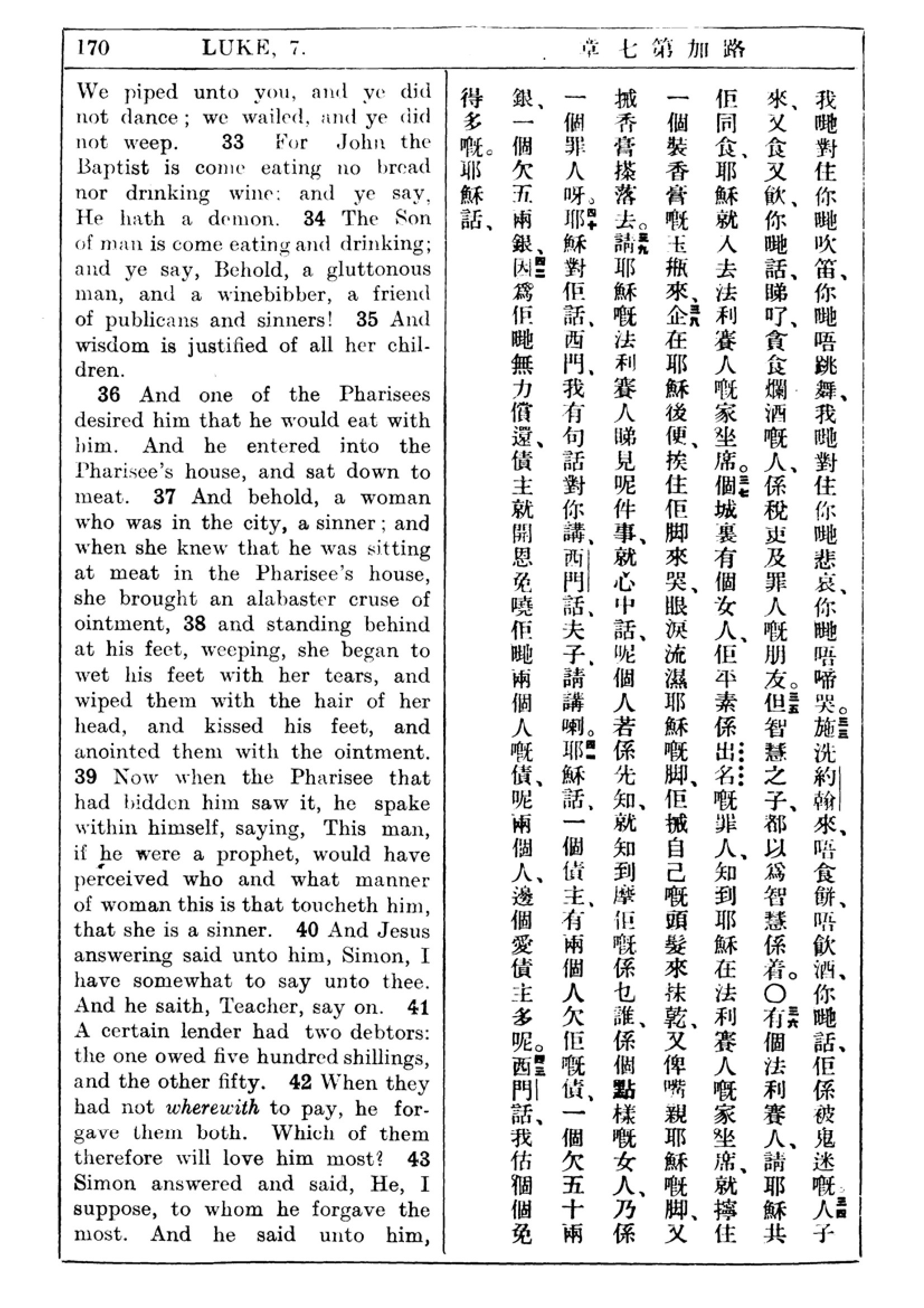 1927年新约全书(中英对照) 路加福音 7 章 33 节到 7 章 43 节