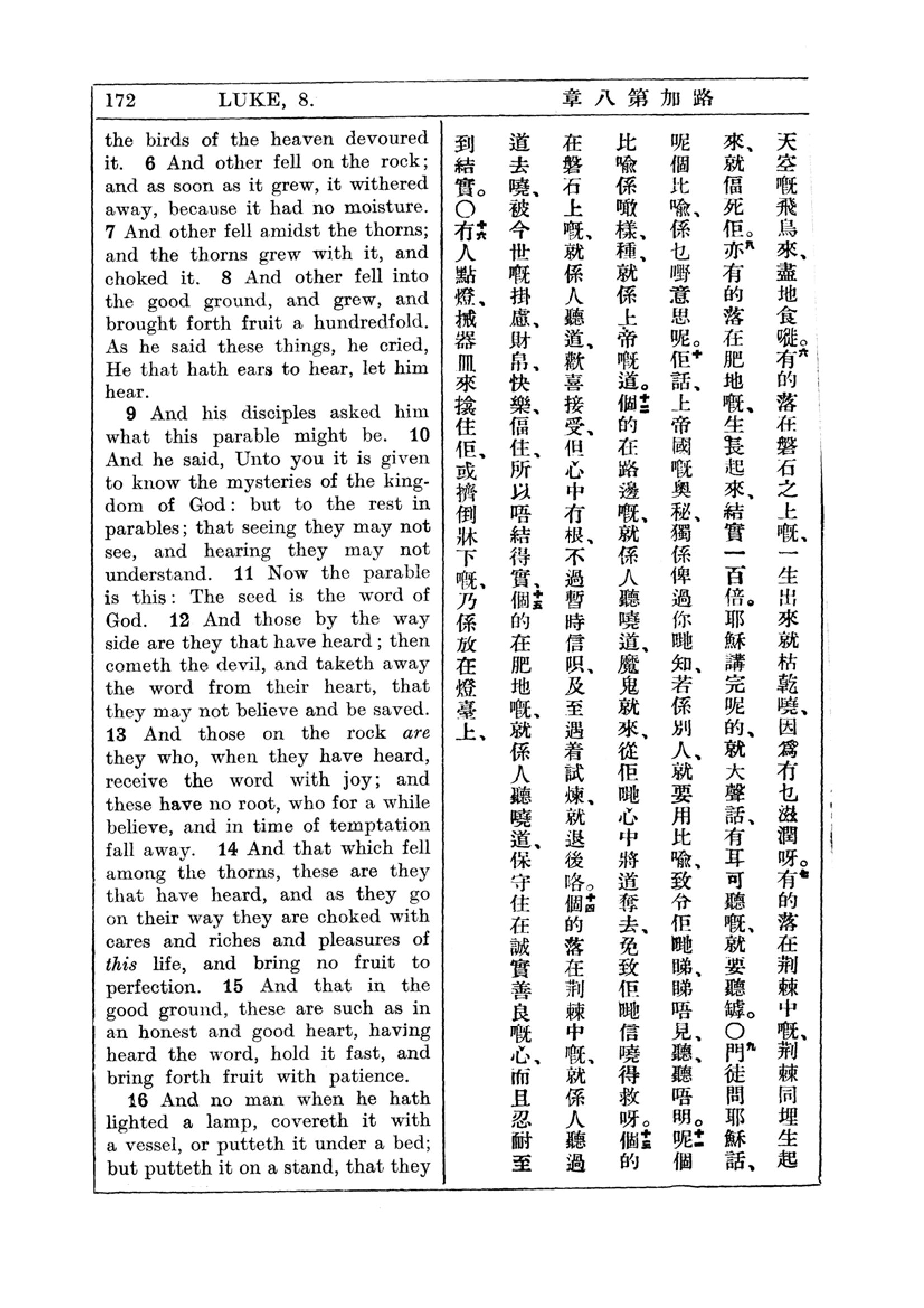 1927年新约全书(中英对照) 路加福音 8 章 6 节到 8 章 16 节