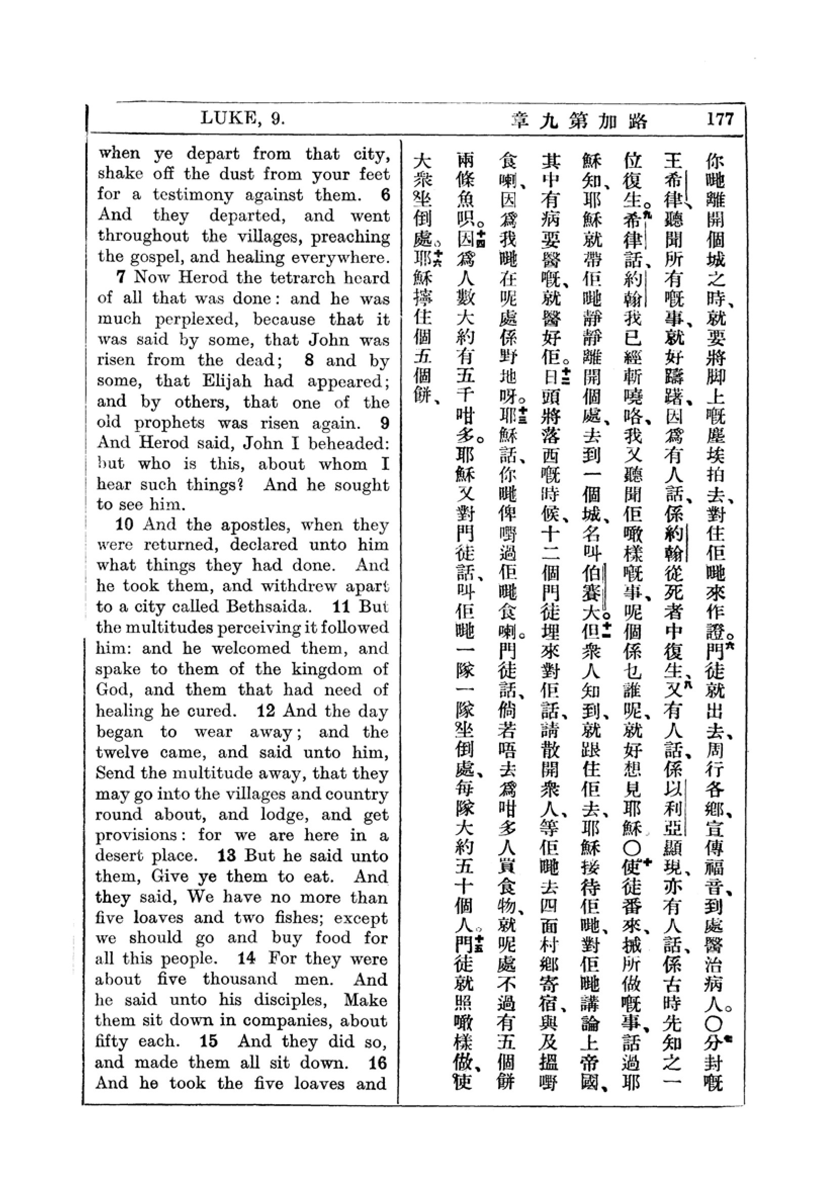 1927年新约全书(中英对照) 路加福音 9 章 5 节到 9 章 15 节