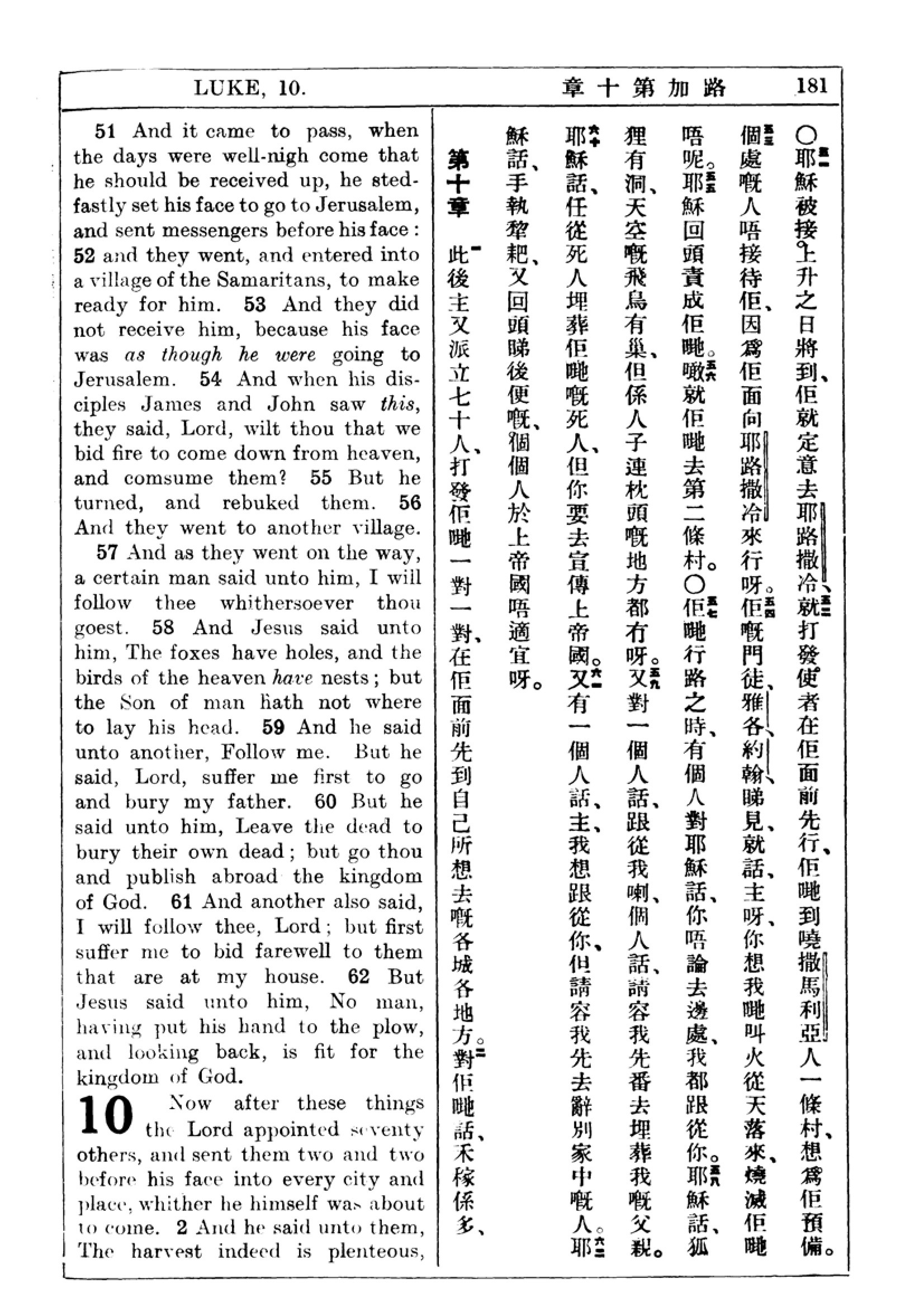 1927年新约全书(中英对照) 路加福音 9 章 51 节到 10 章 2 节