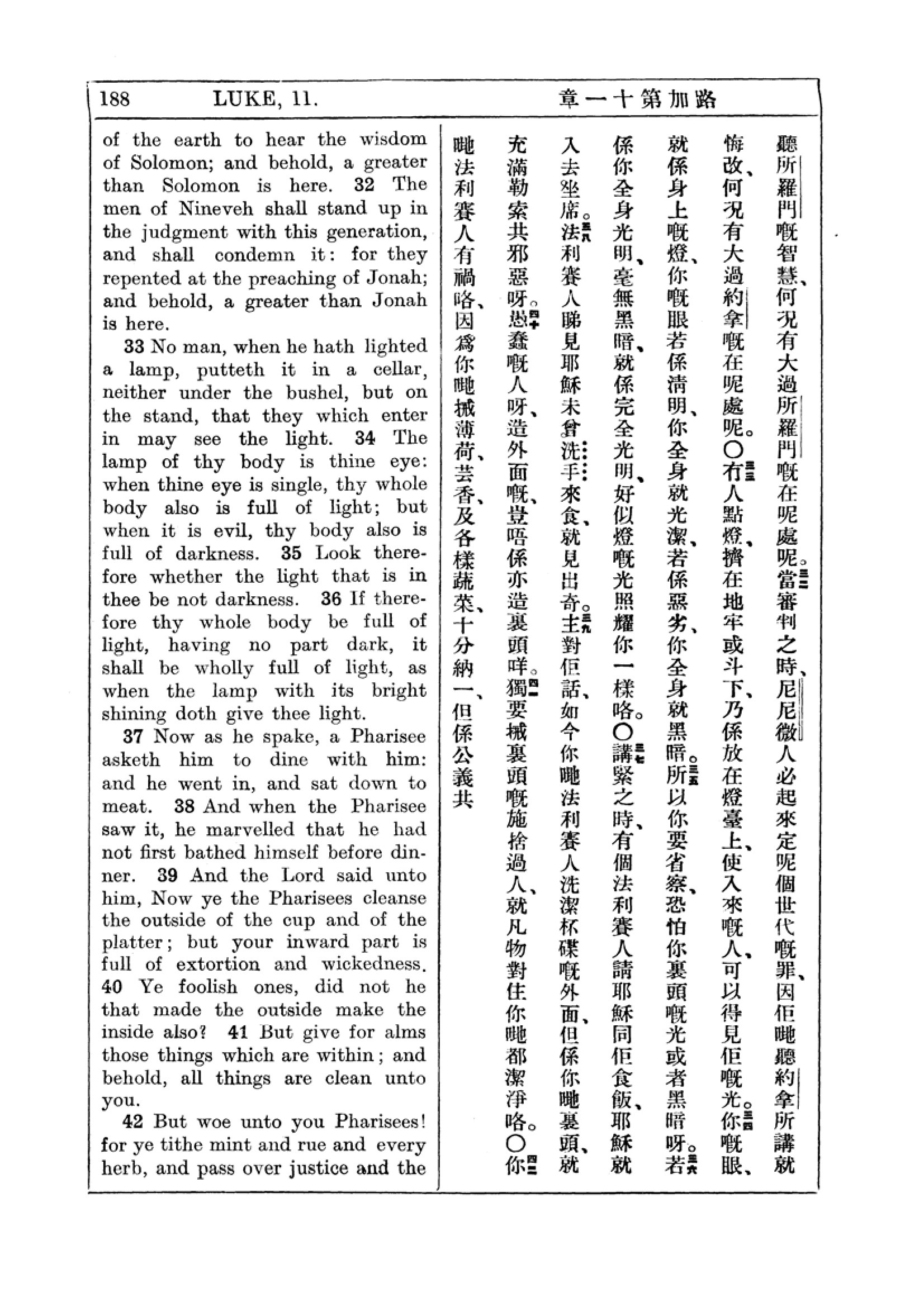 1927年新约全书(中英对照) 路加福音 11 章 32 节到 11 章 42 节