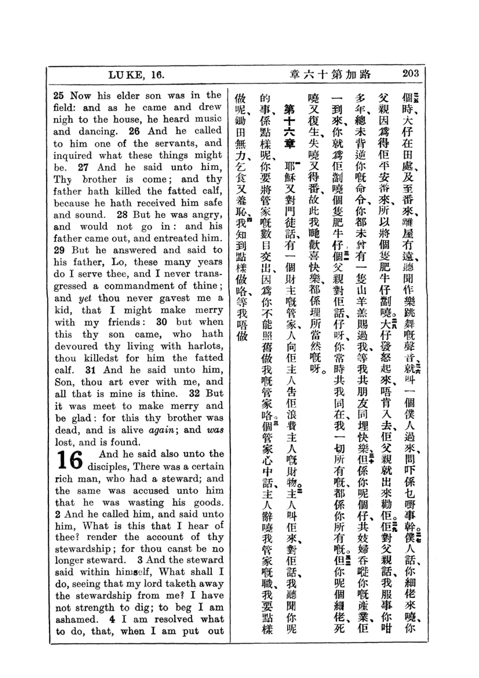 1927年新约全书(中英对照) 路加福音 15 章 25 节到 16 章 4 节