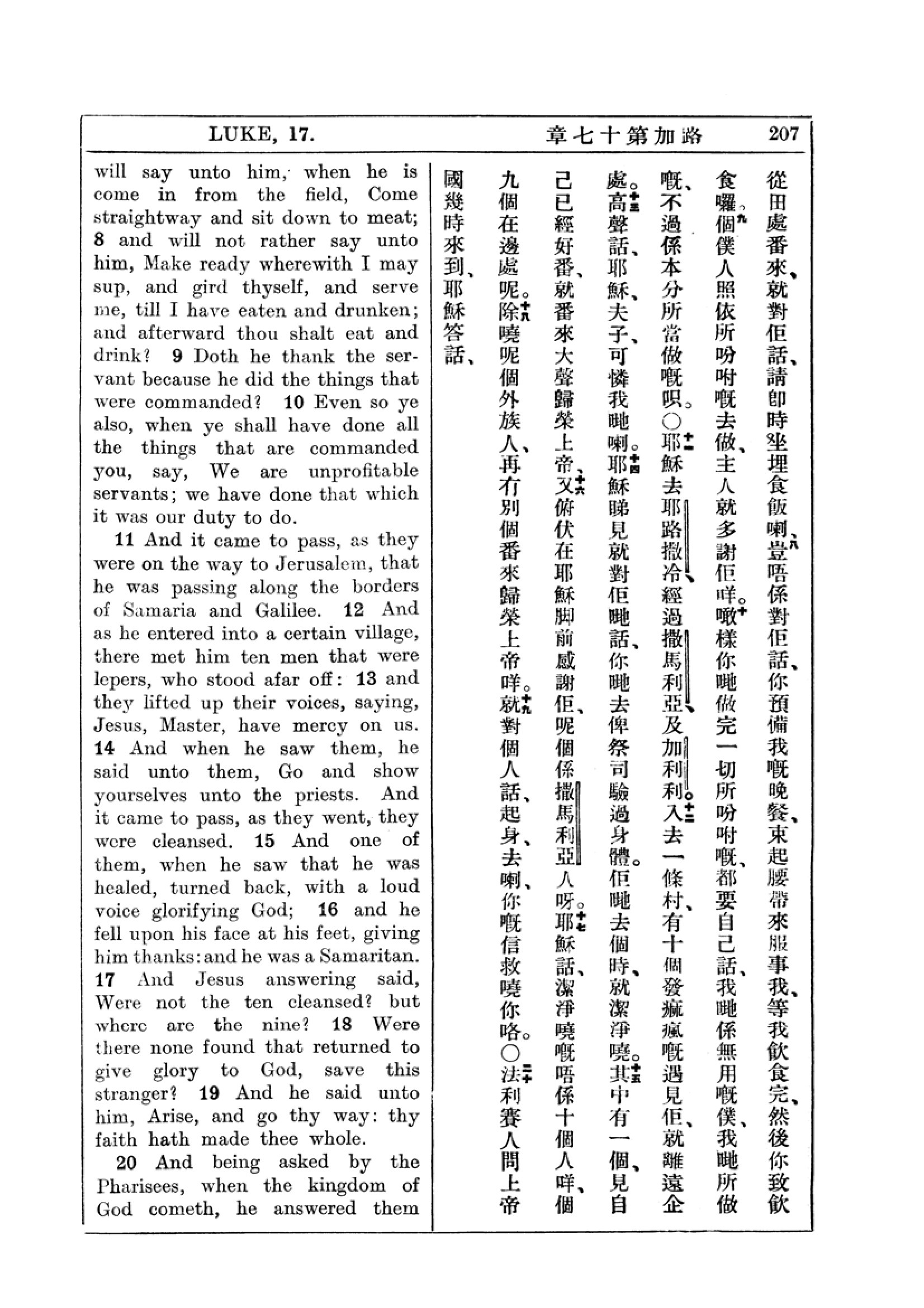 1927年新约全书(中英对照) 路加福音 17 章 8 节到 17 章 20 节