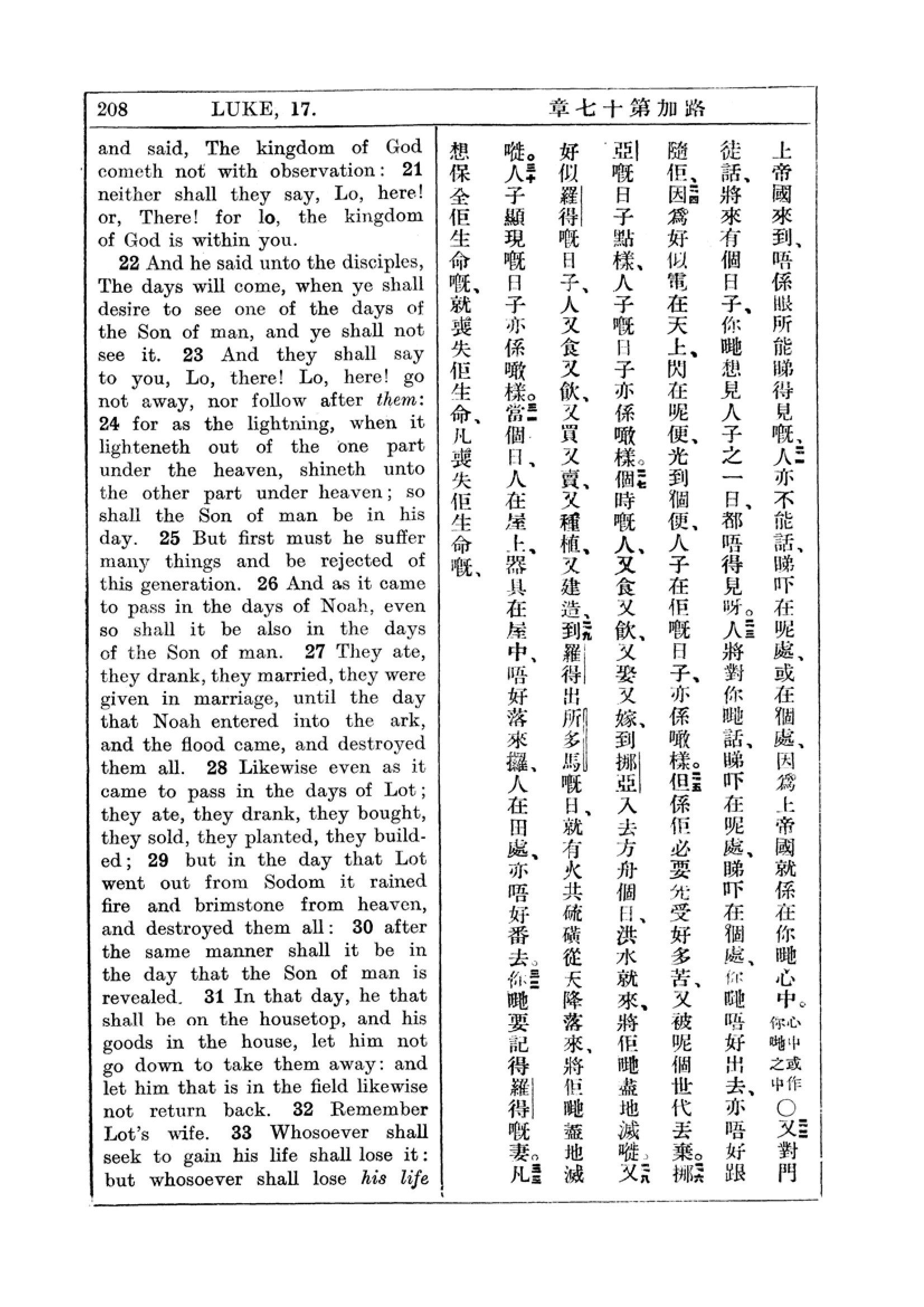 1927年新约全书(中英对照) 路加福音 17 章 21 节到 17 章 33 节