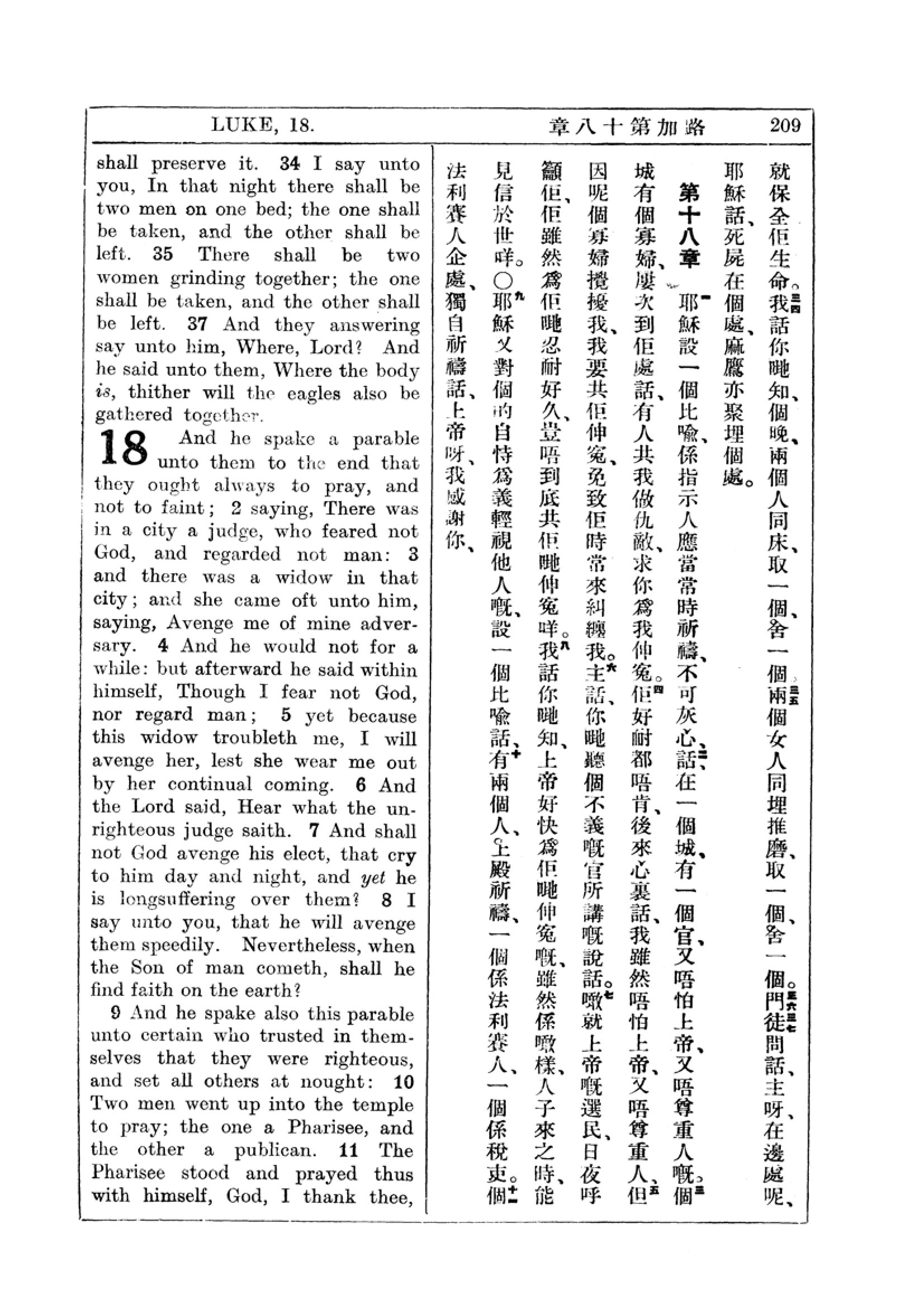 1927年新约全书(中英对照) 路加福音 17 章 34 节到 18 章 11 节
