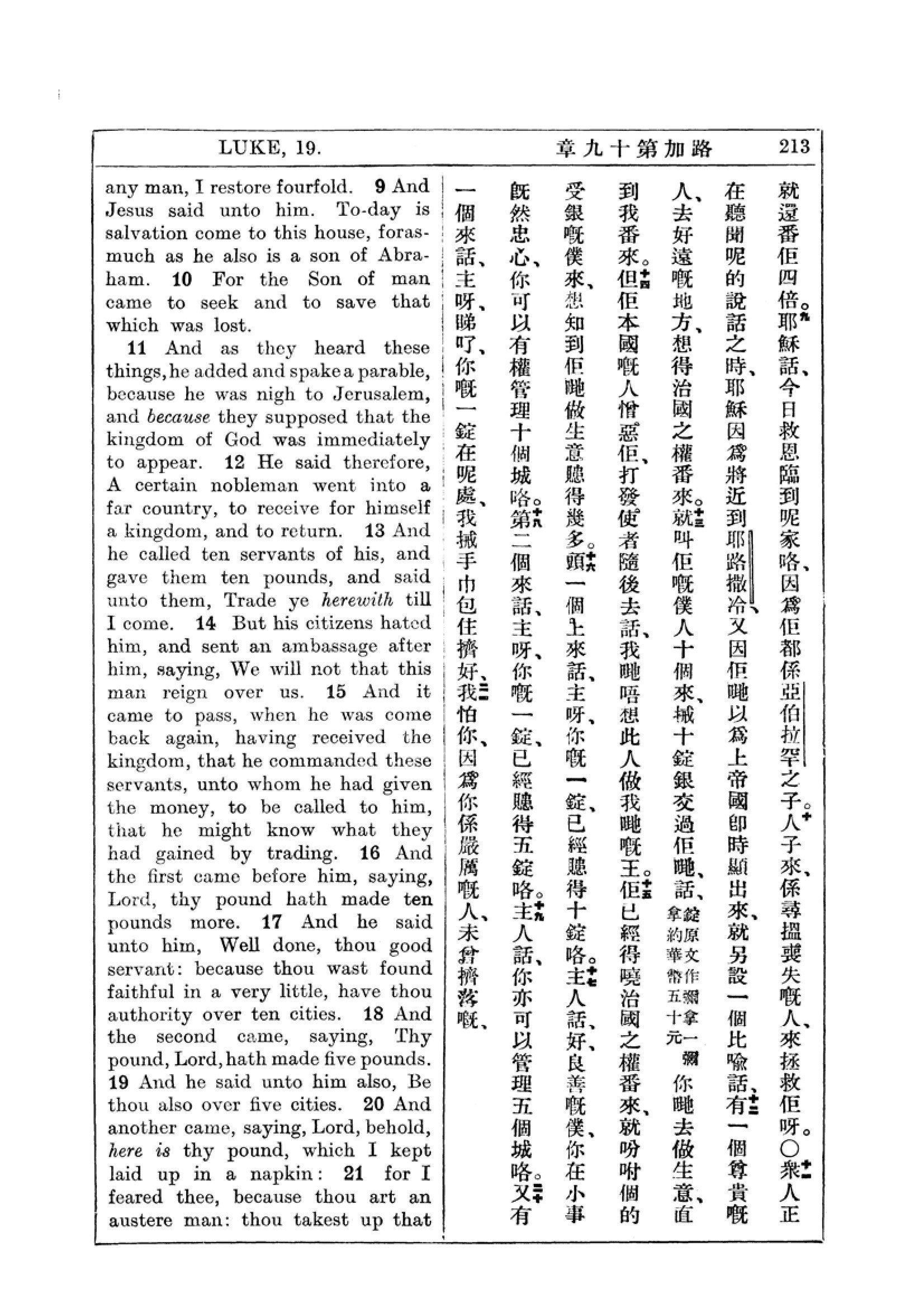1927年新约全书(中英对照) 路加福音 19 章 9 节到 19 章 21 节