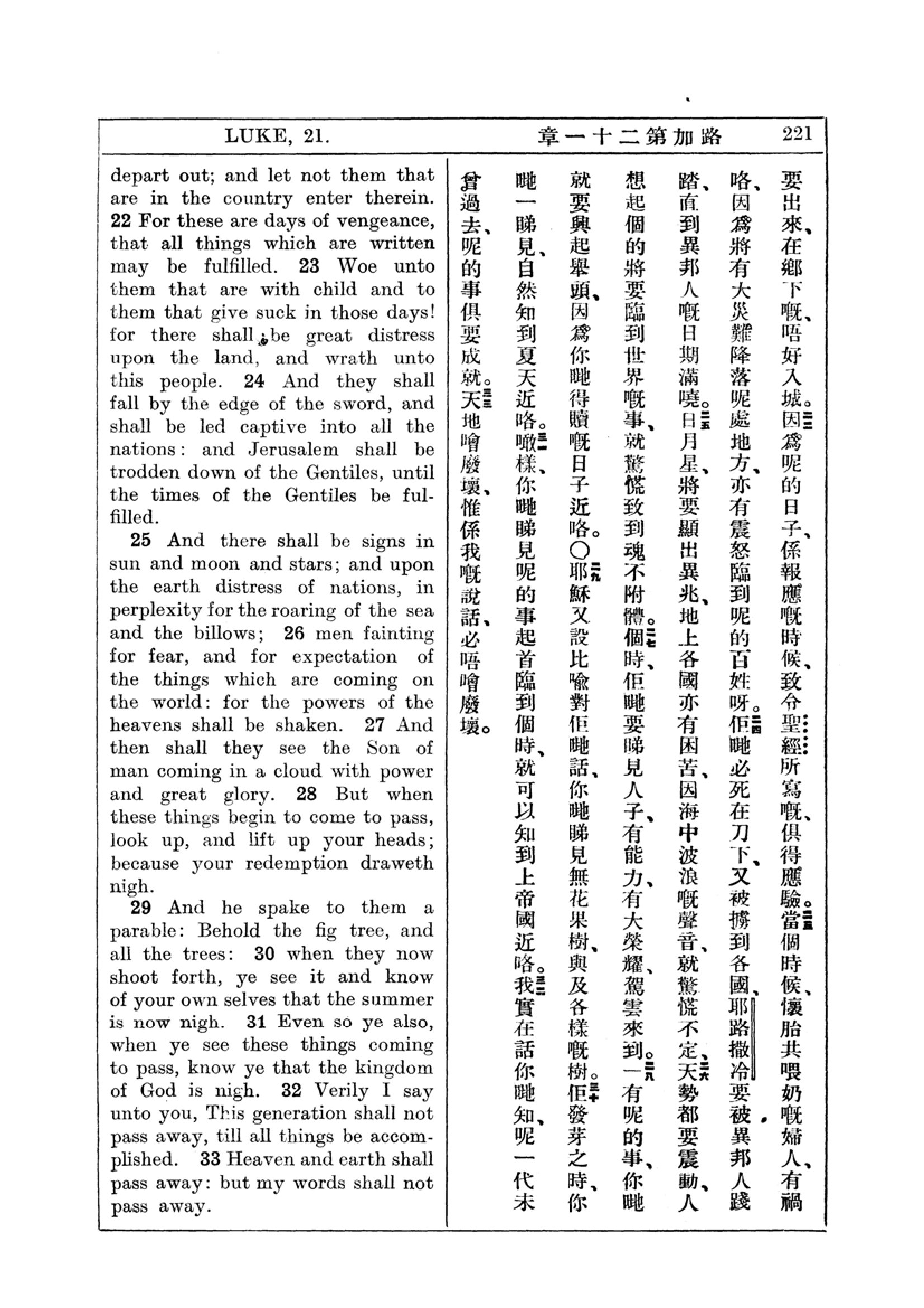 1927年新约全书(中英对照) 路加福音 21 章 22 节到 21 章 33 节