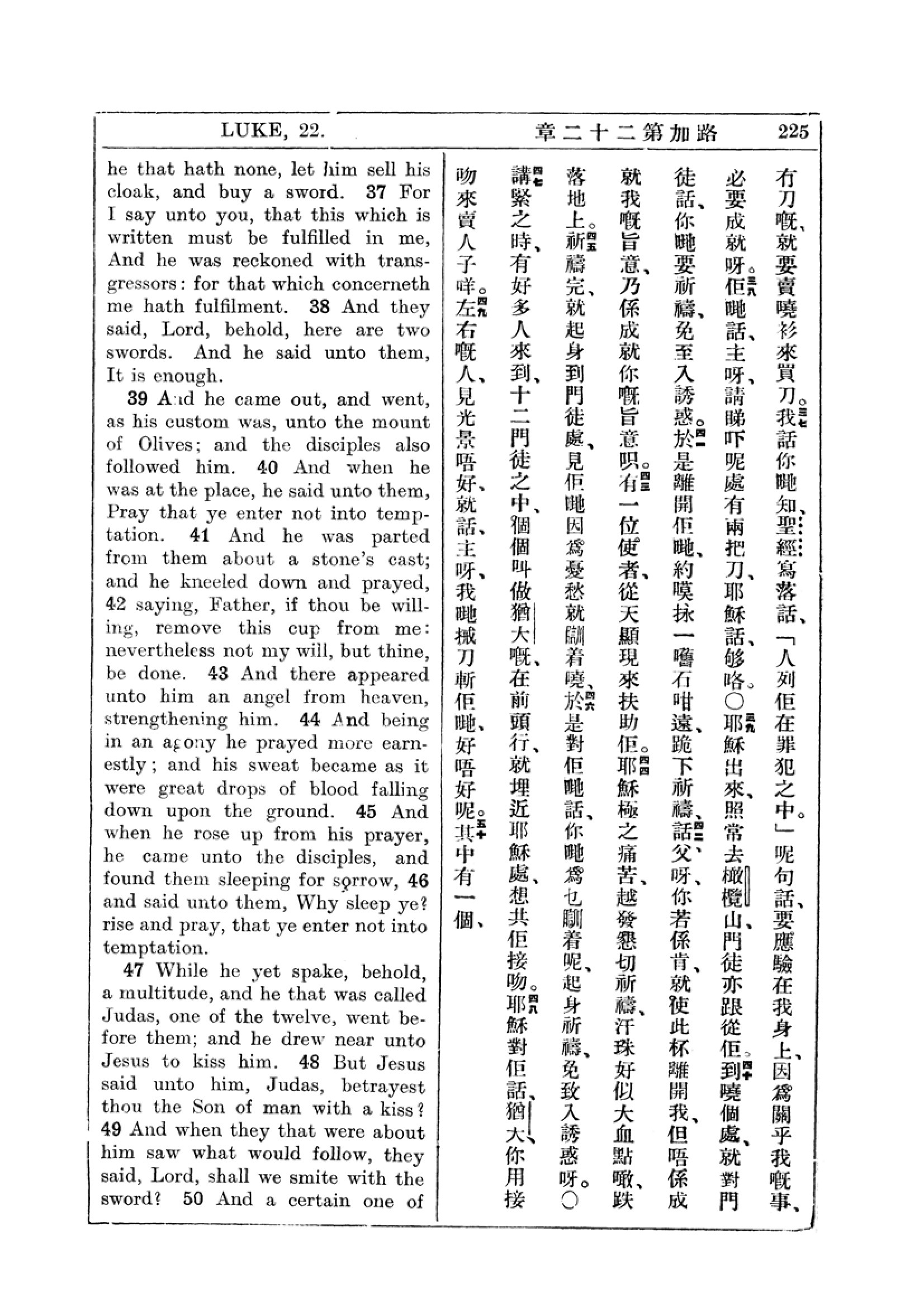 1927年新约全书(中英对照) 路加福音 22 章 37 节到 22 章 49 节