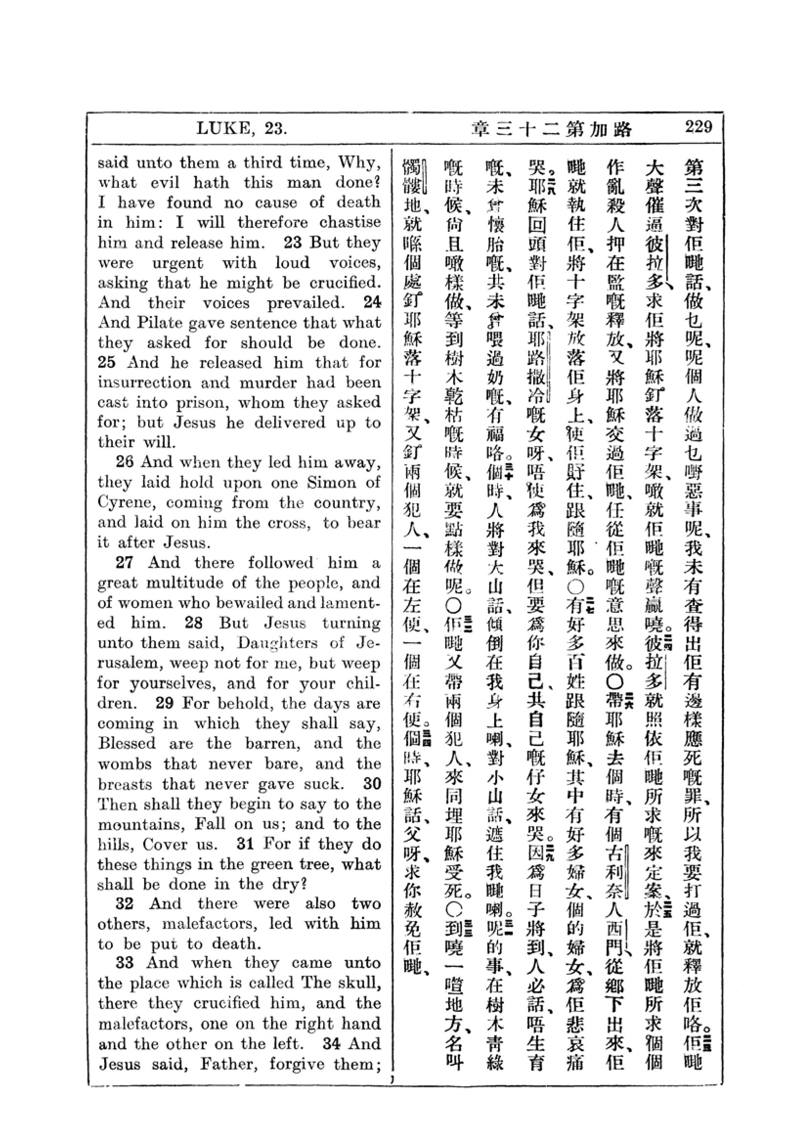 1927年新约全书(中英对照) 路加福音 23 章 22 节到 23 章 34 节