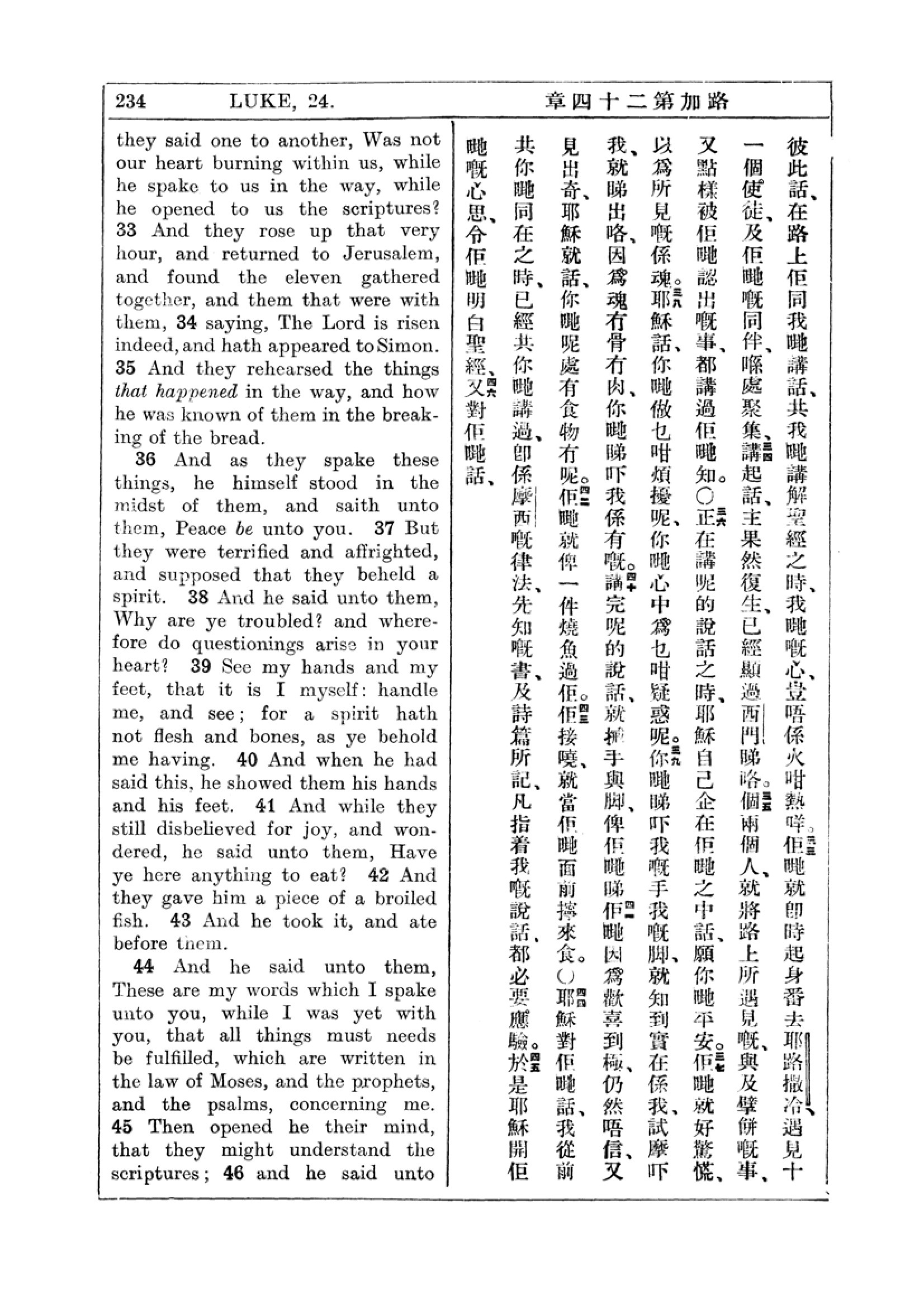 1927年新约全书(中英对照) 路加福音 24 章 32 节到 24 章 45 节