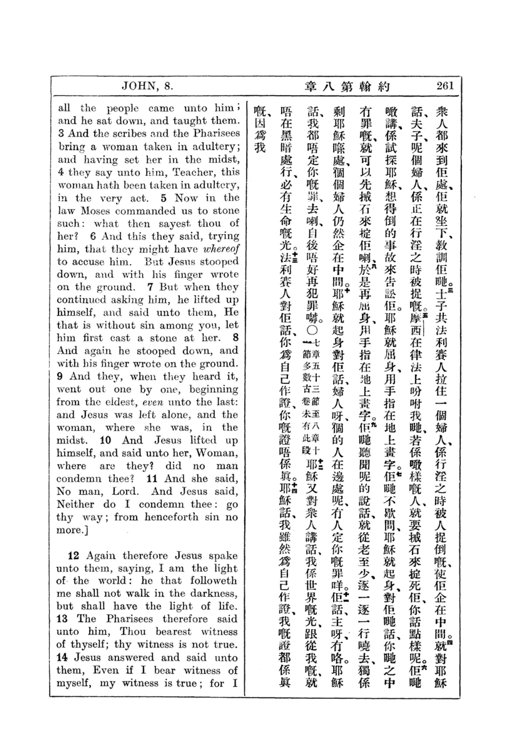 1927年新约全书(中英对照) 约翰福音 8 章 3 节到 8 章 14 节