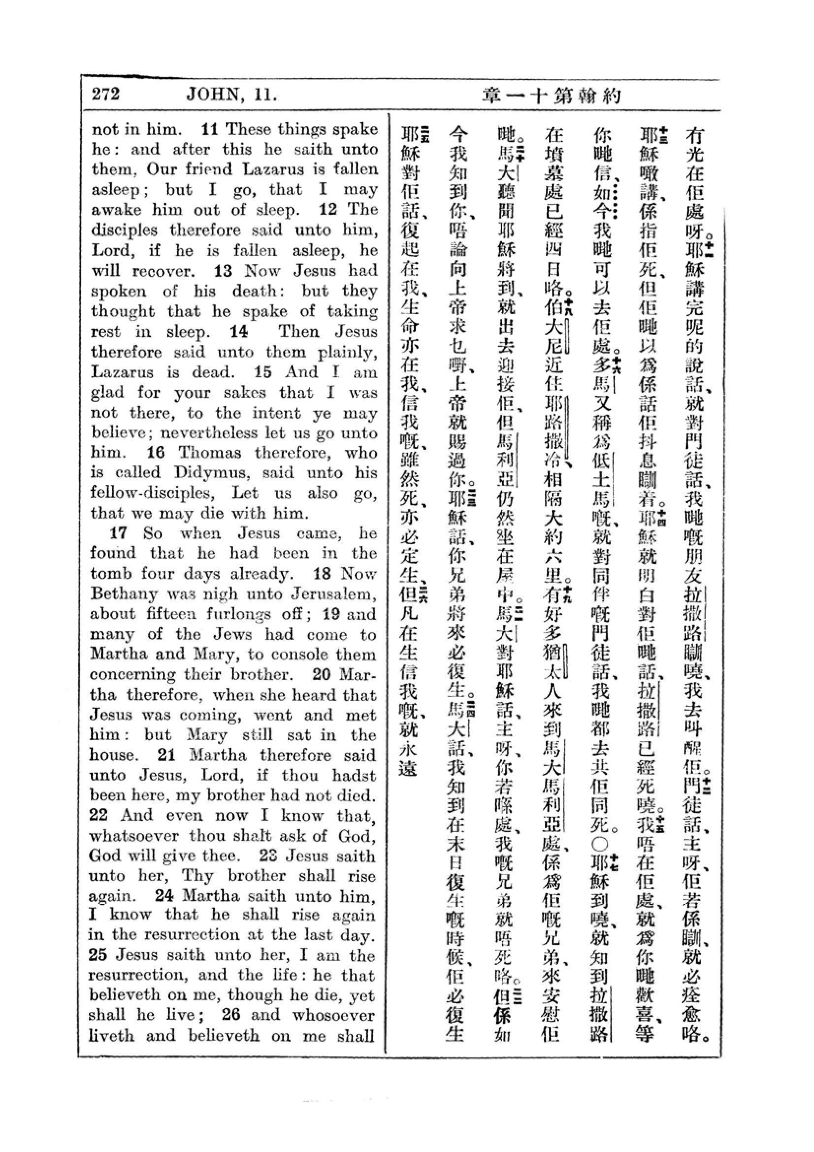 1927年新约全书(中英对照) 约翰福音 11 章 11 节到 11 章 26 节