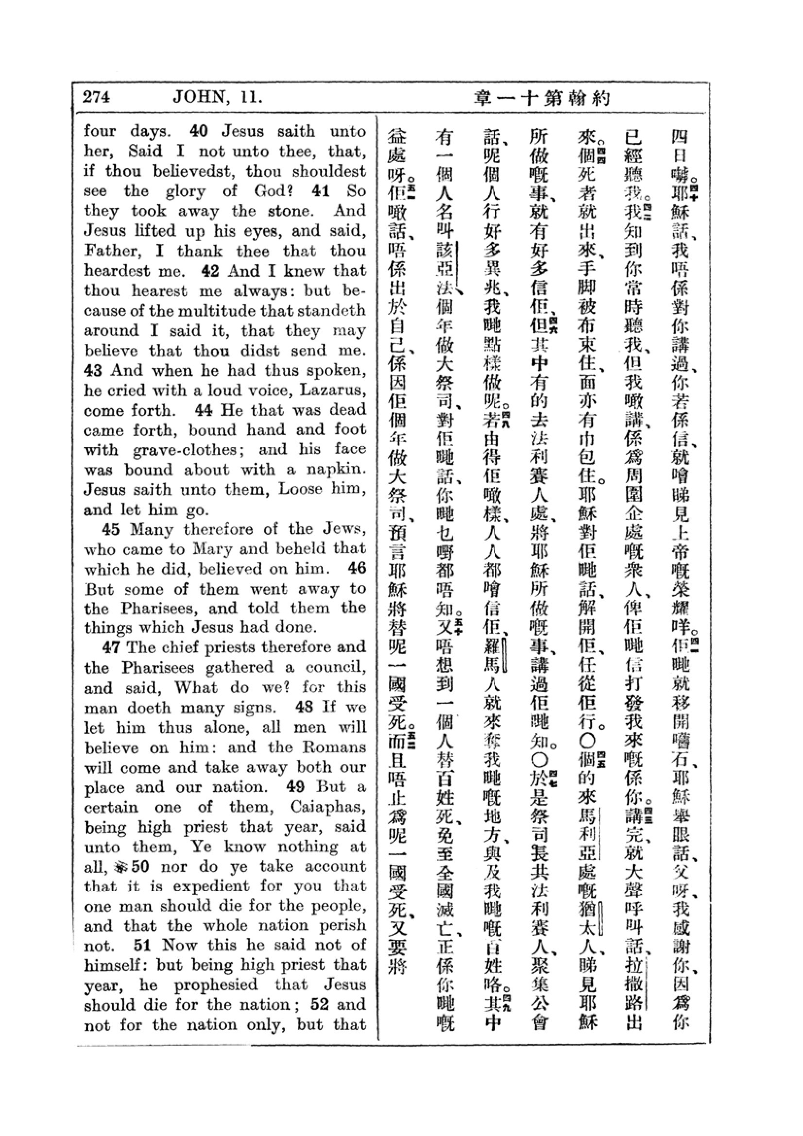 1927年新约全书(中英对照) 约翰福音 11 章 40 节到 11 章 52 节
