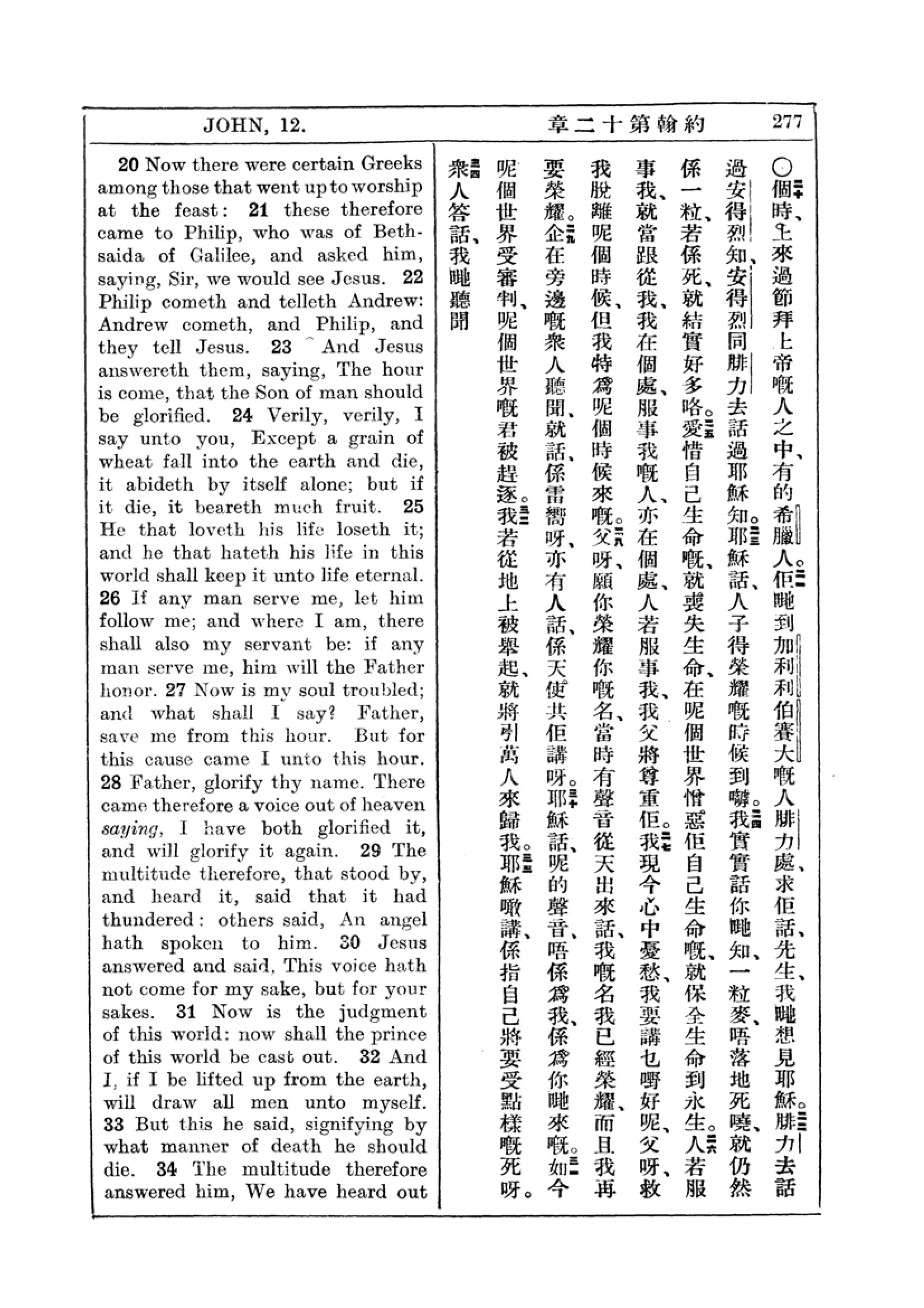 1927年新约全书(中英对照) 约翰福音 12 章 20 节到 12 章 34 节