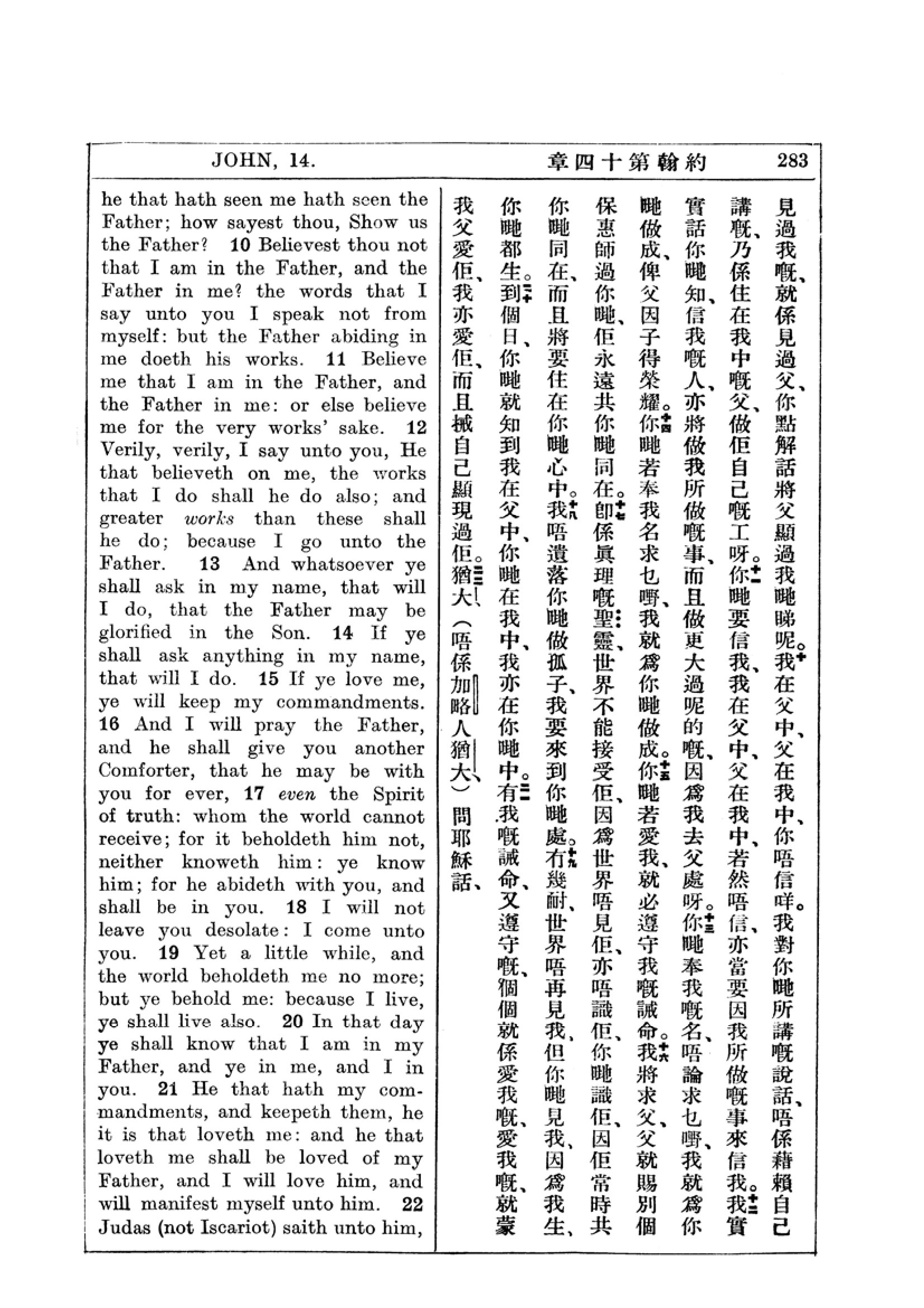 1927年新约全书(中英对照) 约翰福音 14 章 10 节到 14 章 22 节