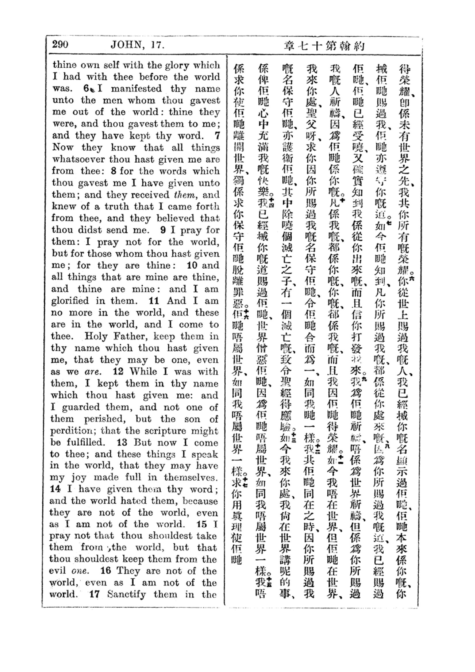 1927年新约全书(中英对照) 约翰福音 17 章 6 节到 17 章 17 节