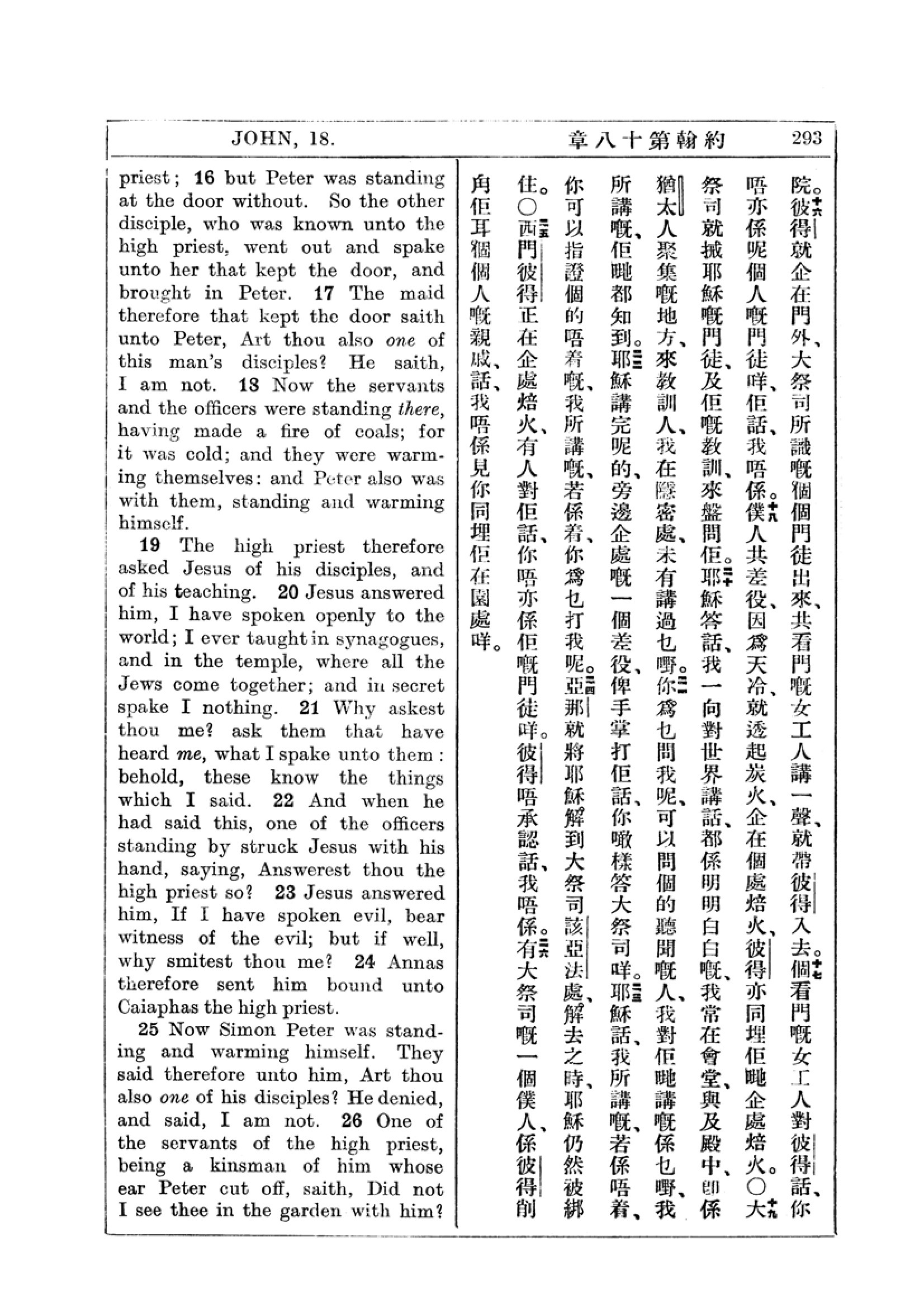 1927年新约全书(中英对照) 约翰福音 18 章 16 节到 18 章 26 节