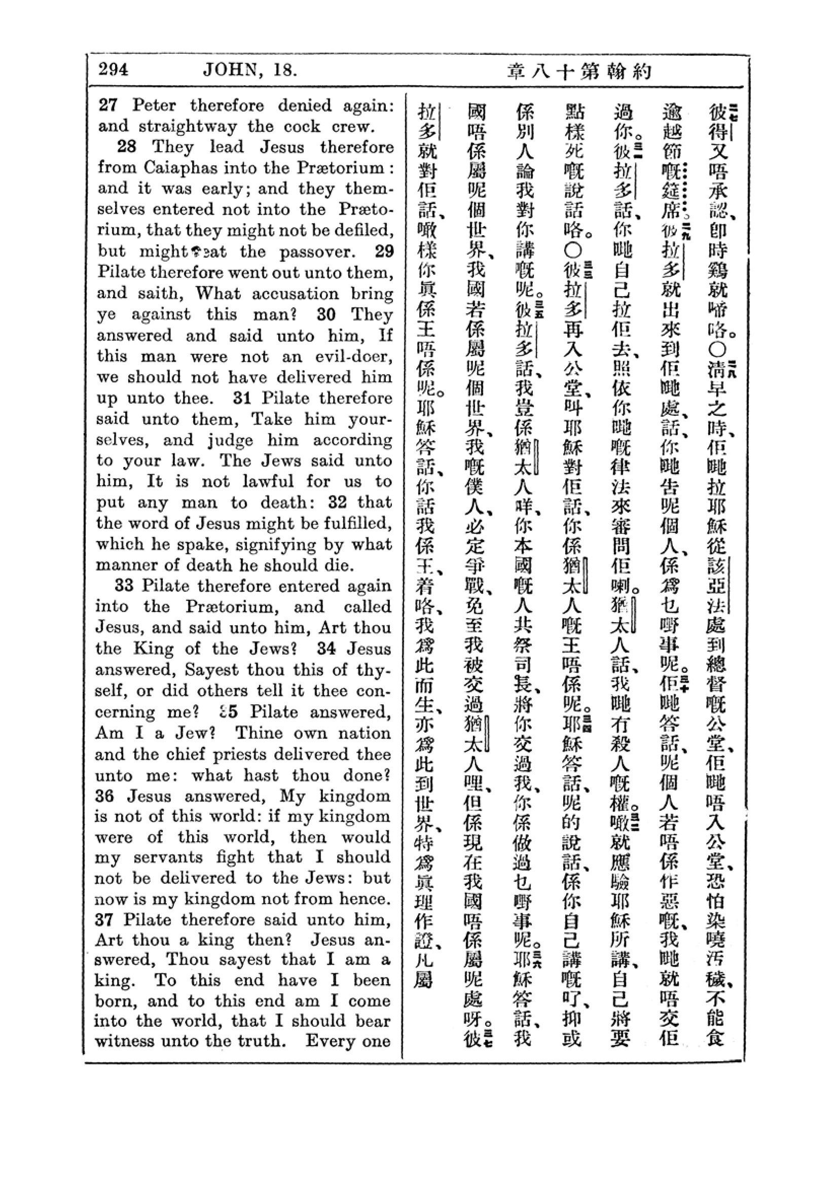 1927年新约全书(中英对照) 约翰福音 18 章 27 节到 18 章 37 节