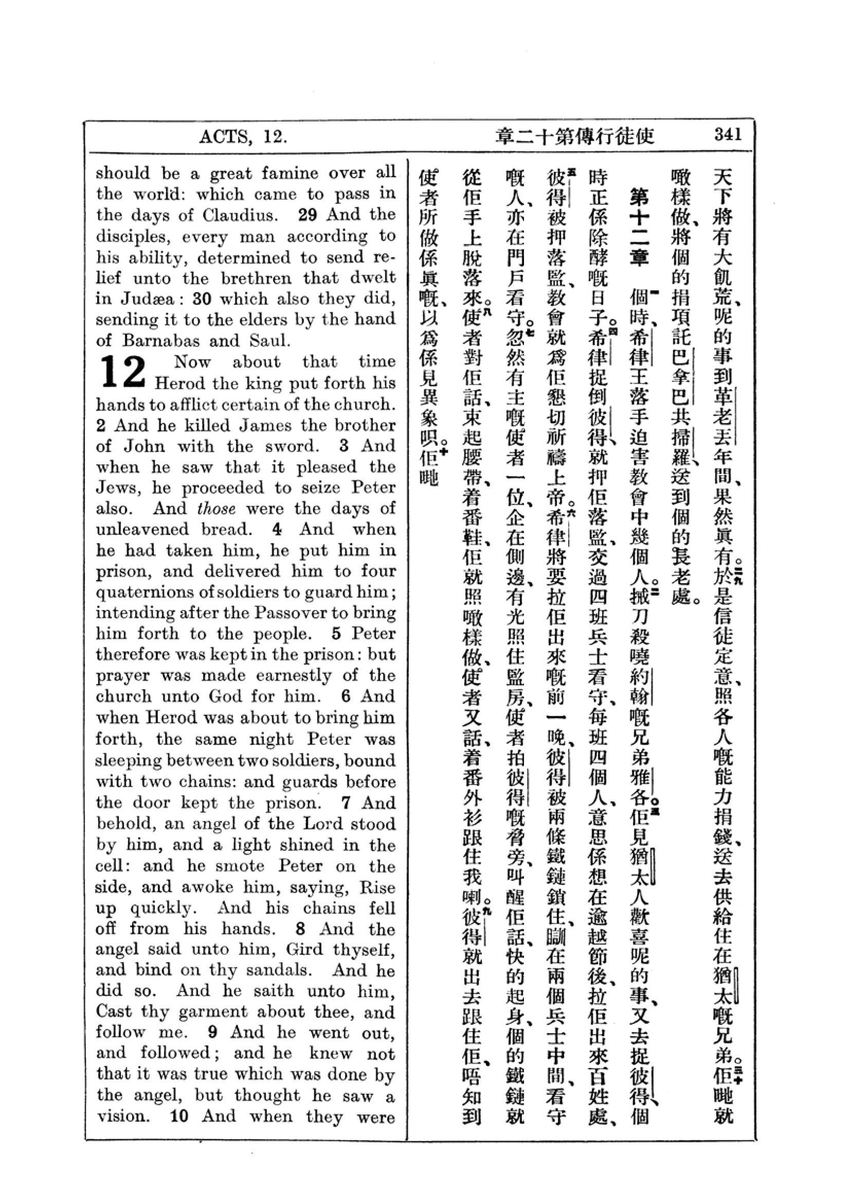 1927年新约全书(中英对照) 使徒行传 11 章 29 节到 12 章 9 节