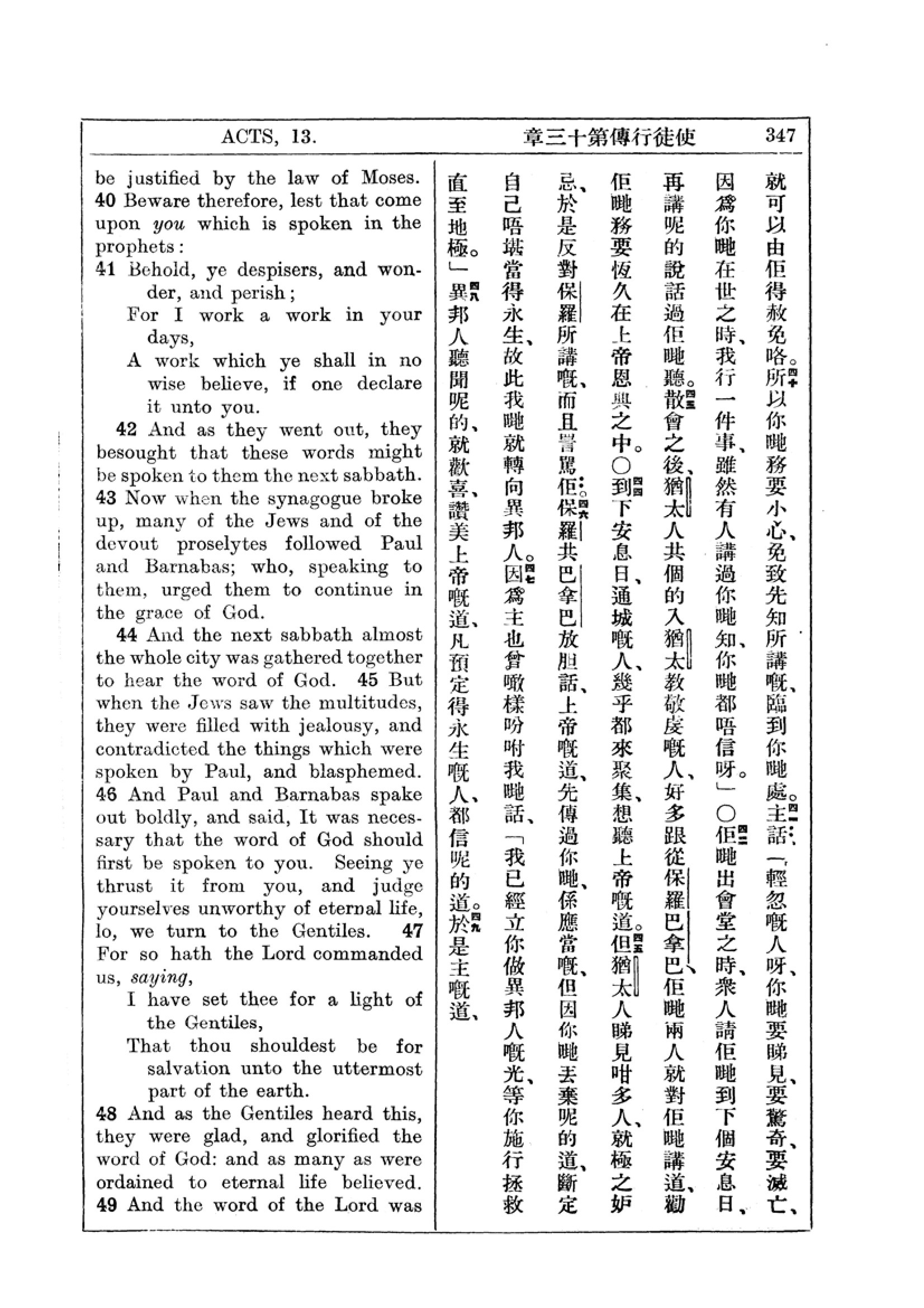 1927年新约全书(中英对照) 使徒行传 13 章 40 节到 13 章 49 节