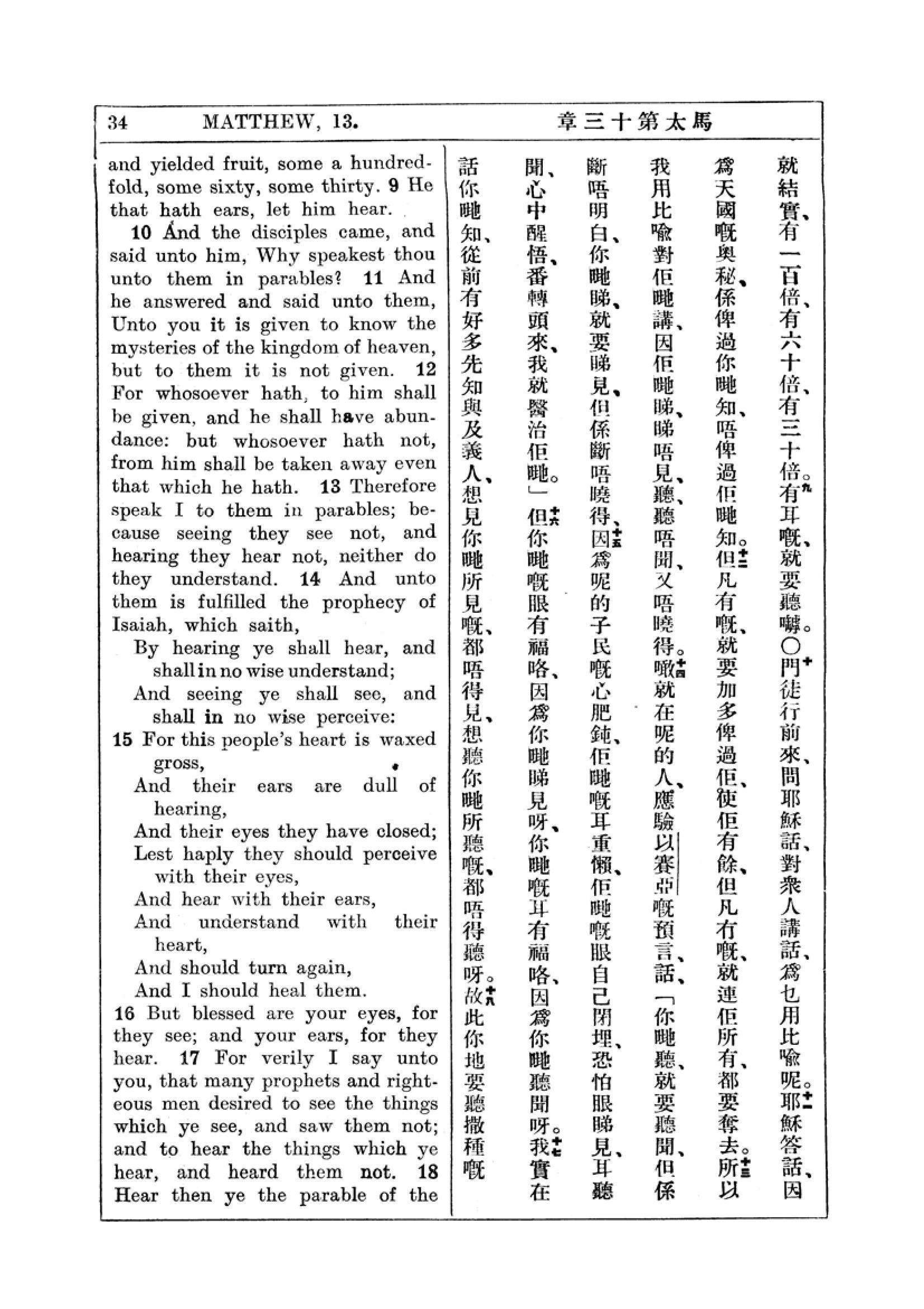 1927年新约全书(中英对照) 马太福音 13 章 9 节到 13 章 18 节