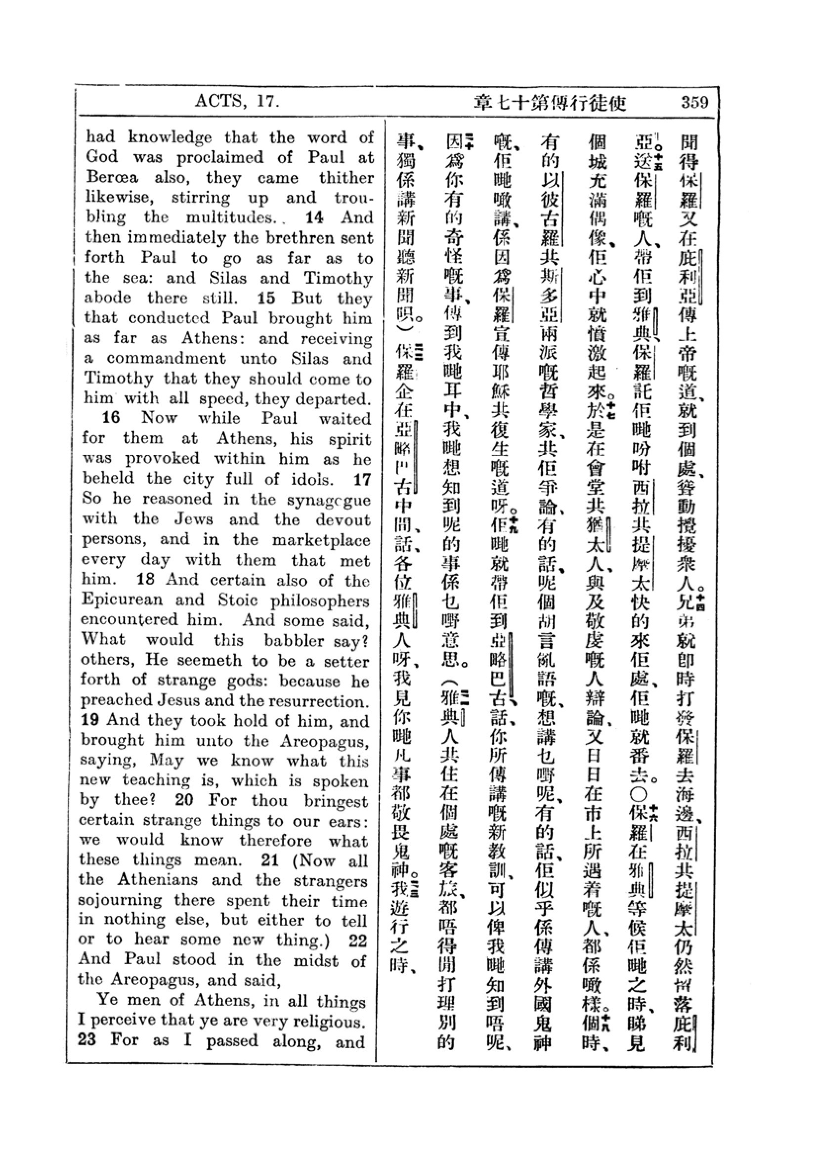 1927年新约全书(中英对照) 使徒行传 17 章 14 节到 17 章 22 节