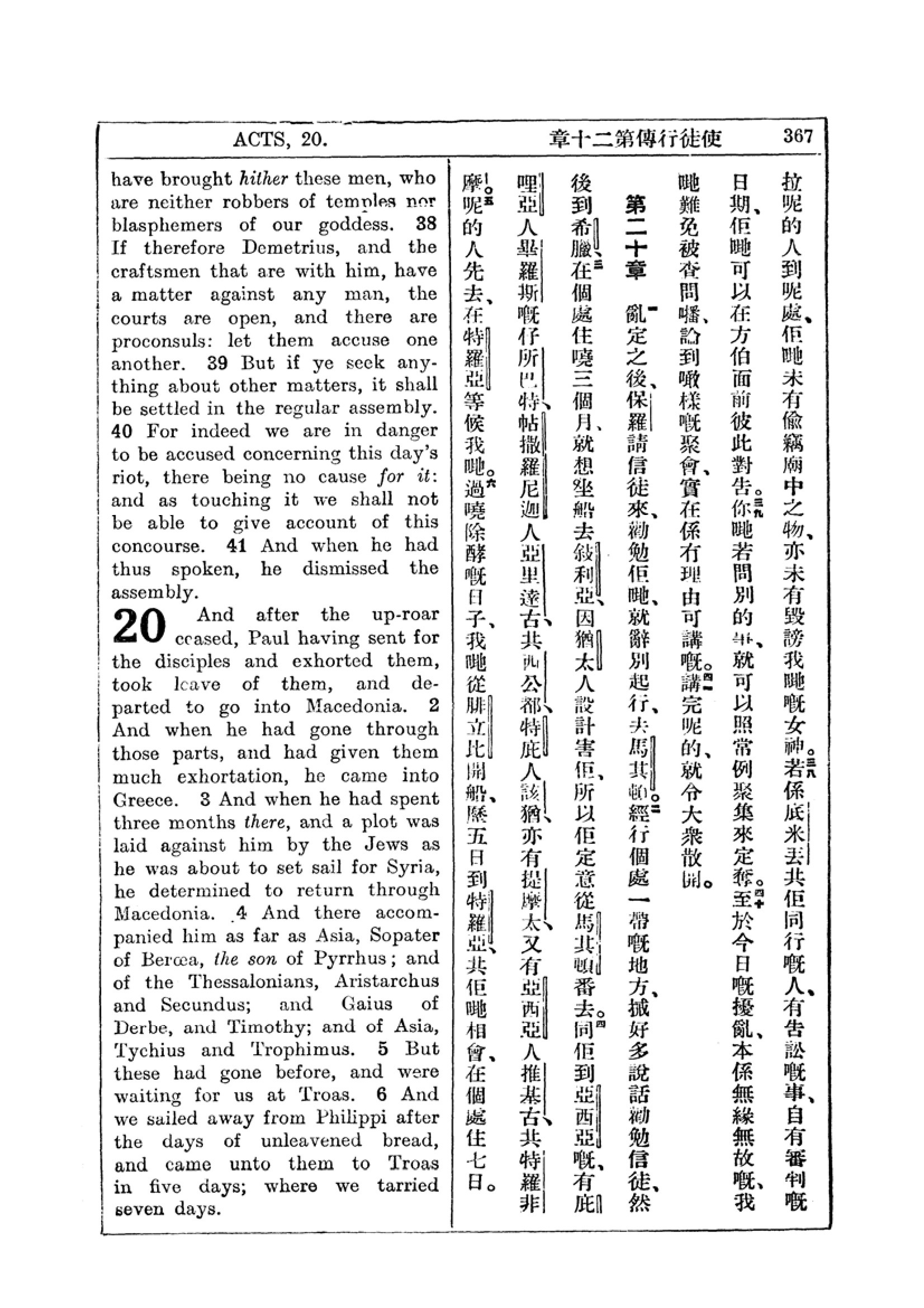 1927年新约全书(中英对照) 使徒行传 19 章 37 节到 20 章 6 节