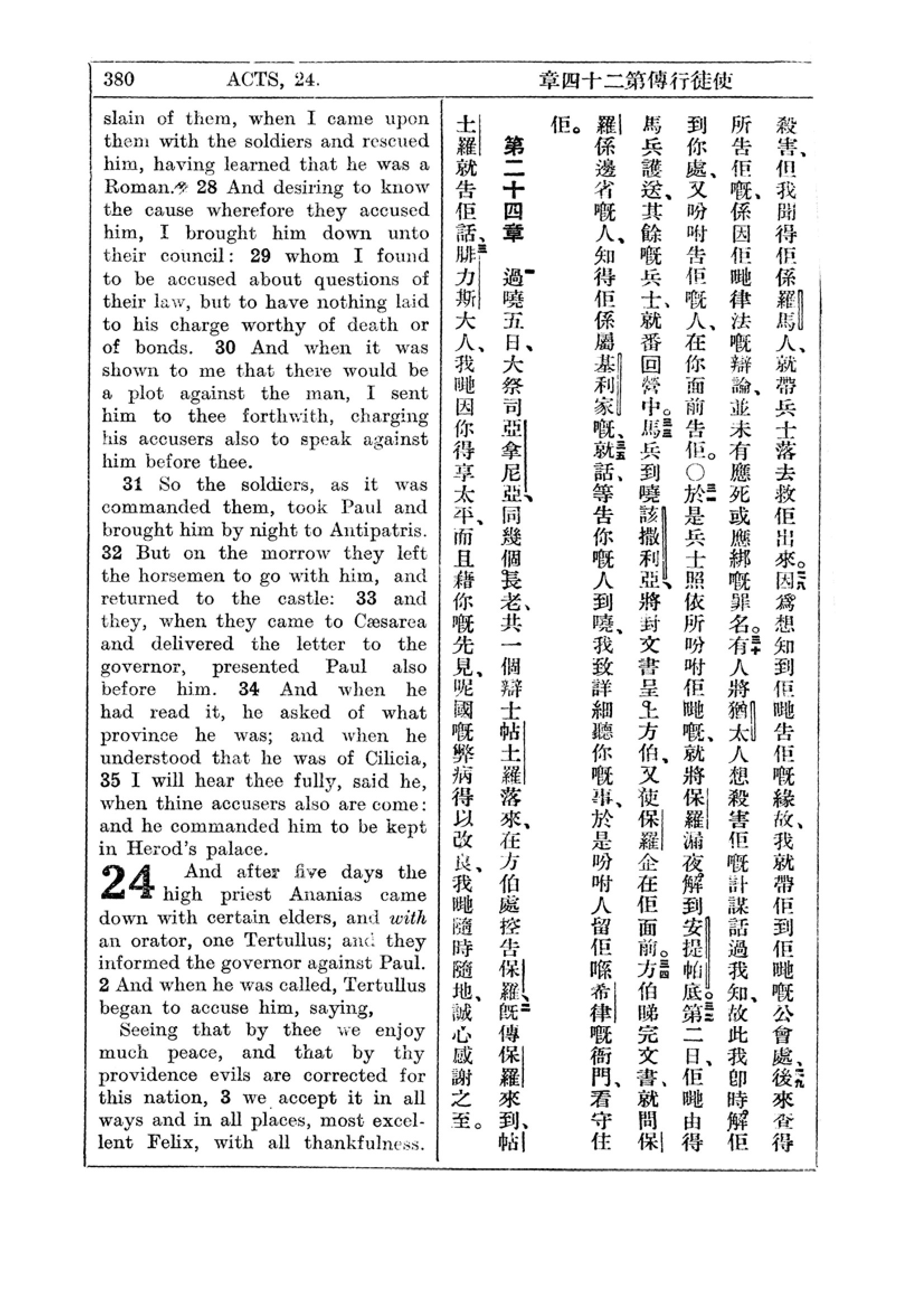 1927年新约全书(中英对照) 使徒行传 23 章 28 节到 24 章 3 节