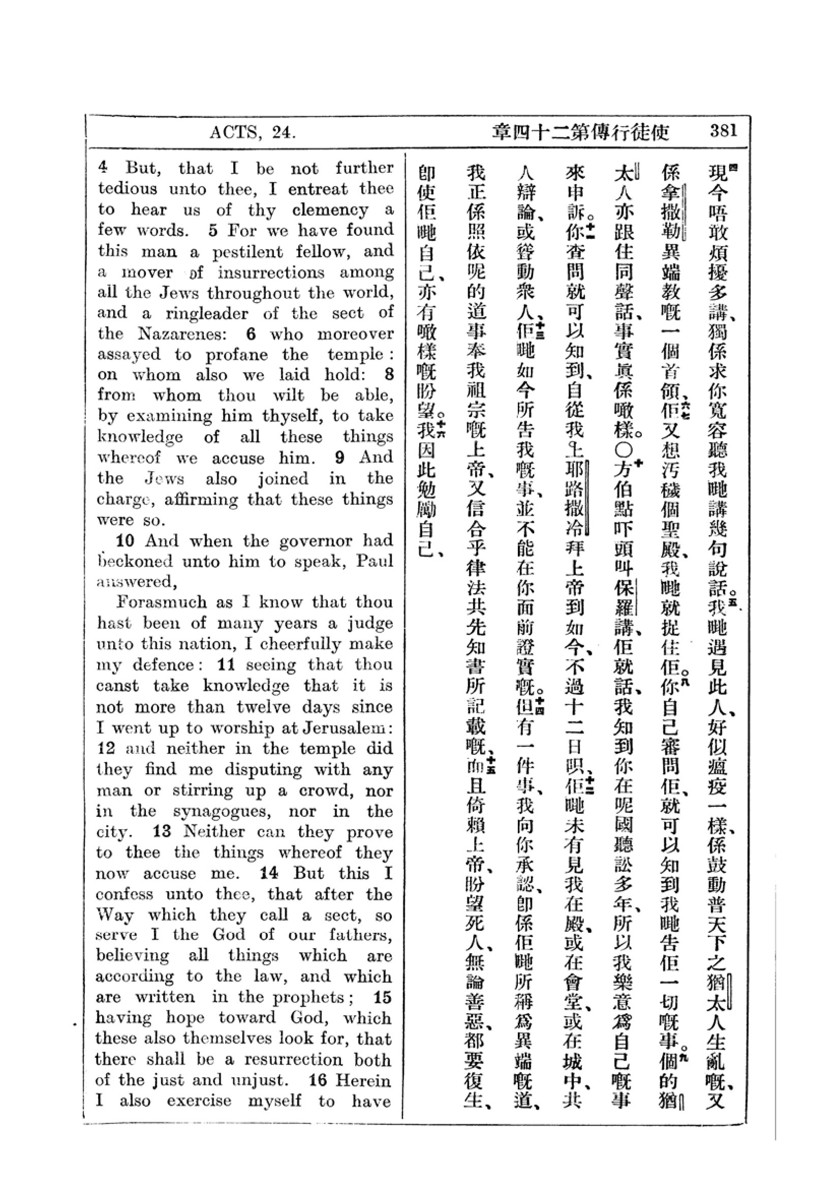1927年新约全书(中英对照) 使徒行传 24 章 4 节到 24 章 16 节