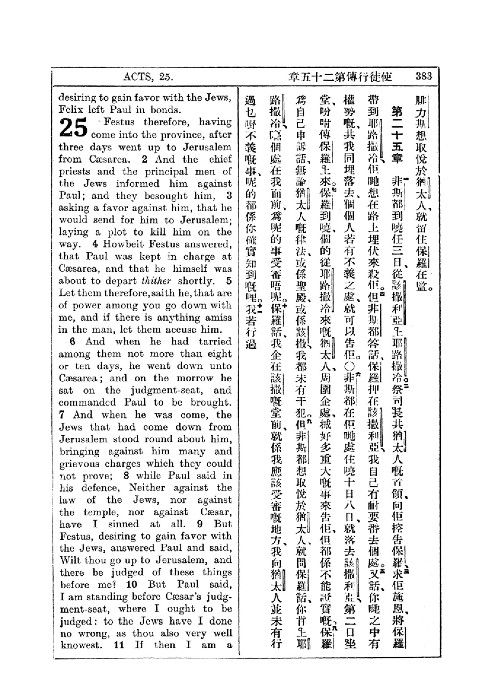 1927年新约全书(中英对照) 使徒行传 25 章 1 节到 25 章 10 节
