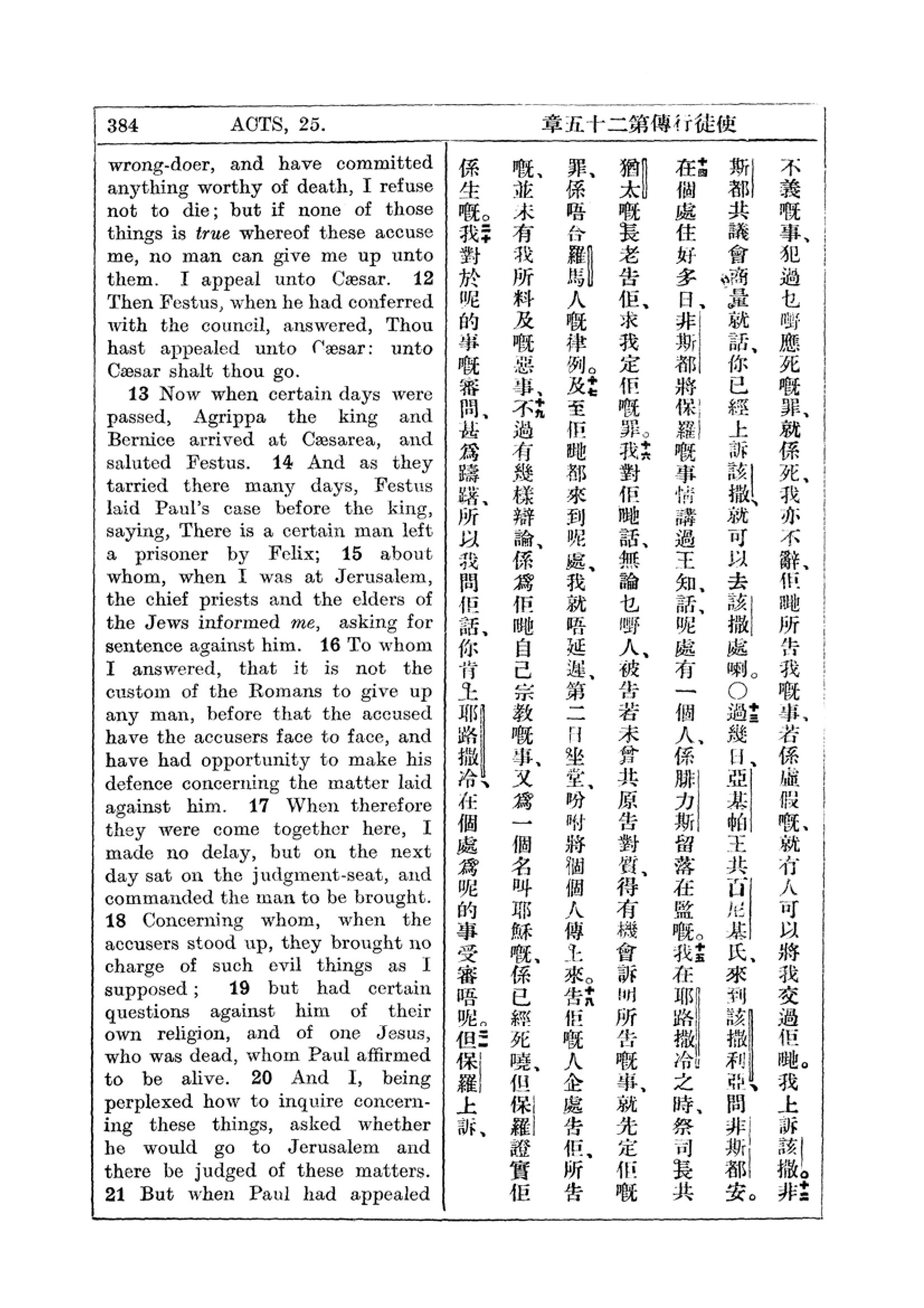 1927年新约全书(中英对照) 使徒行传 25 章 11 节到 25 章 20 节