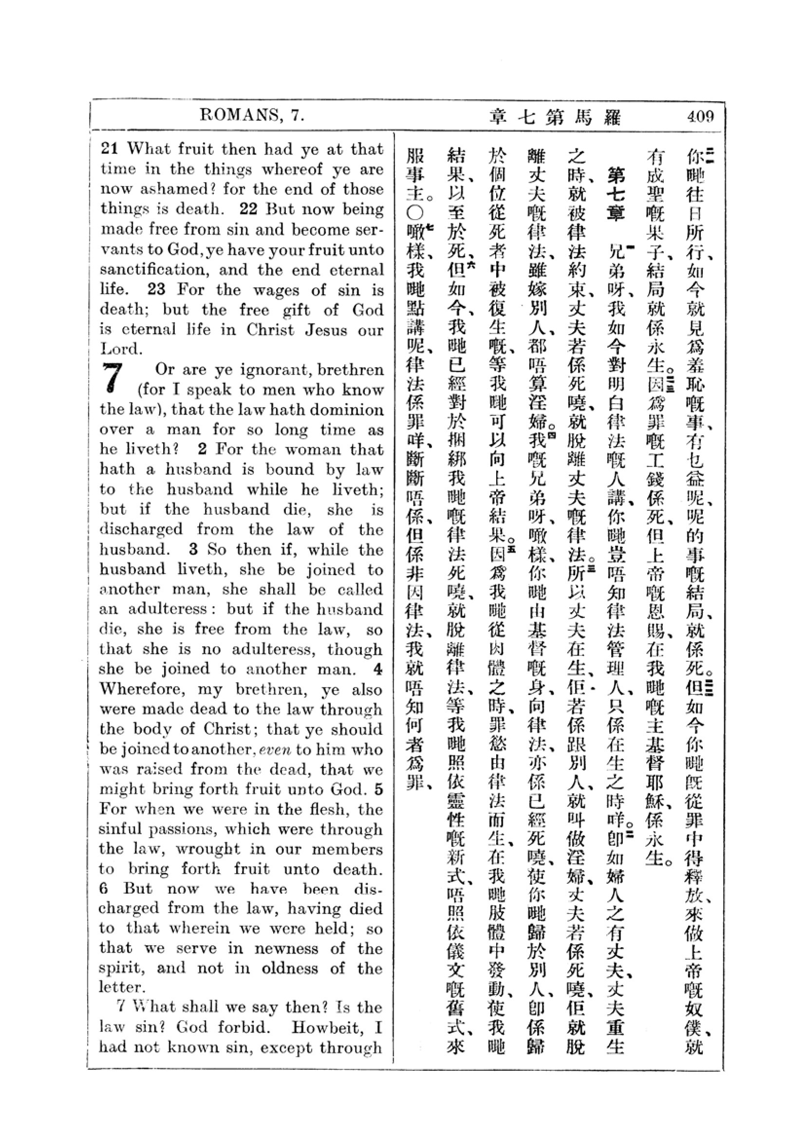 1927年新约全书(中英对照) 罗马书 6 章 21 节到 7 章 7 节