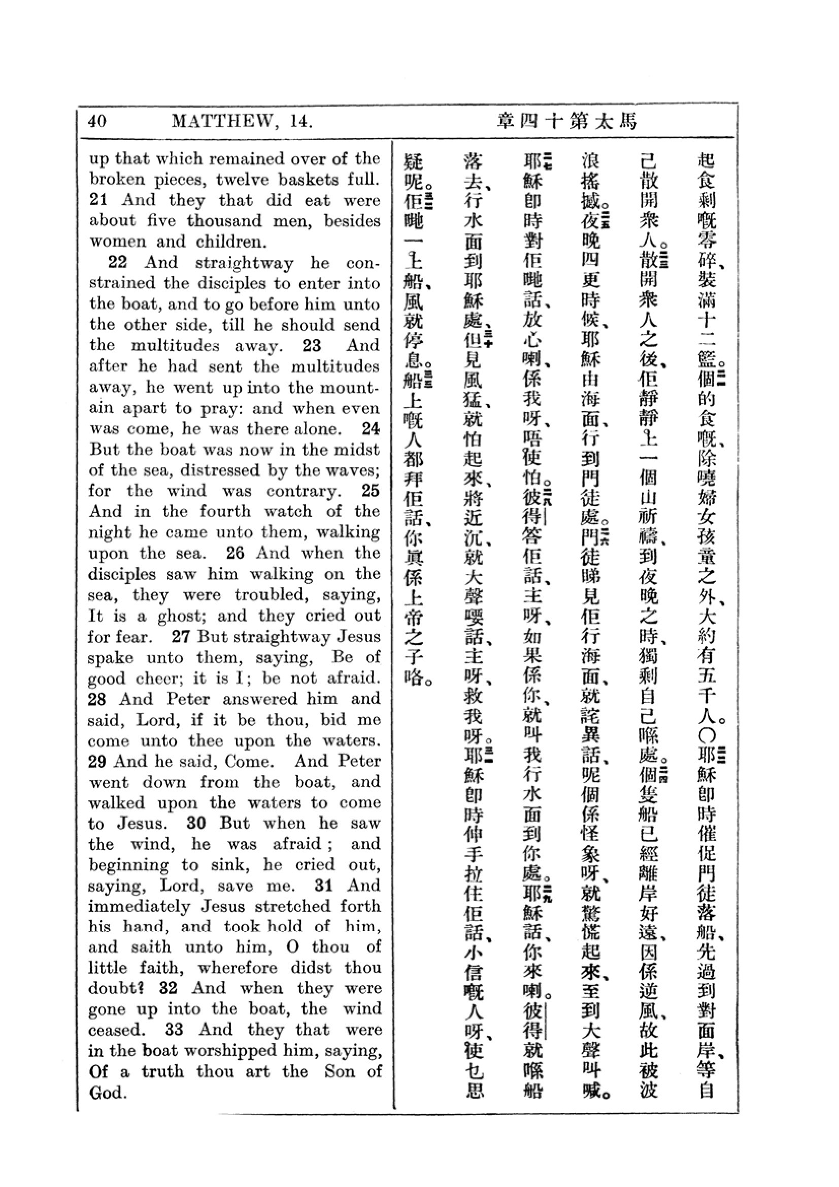 1927年新约全书(中英对照) 马太福音 14 章 21 节到 14 章 33 节