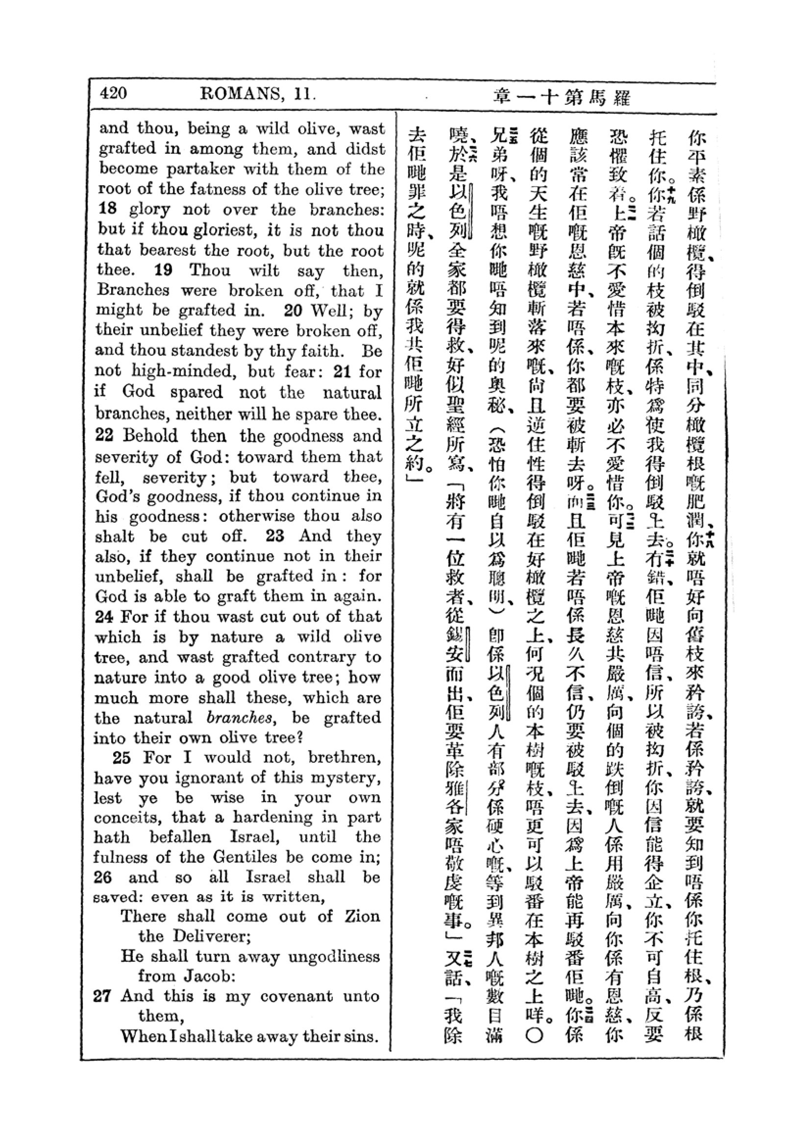 1927年新约全书(中英对照) 罗马书 11 章 18 节到 11 章 27 节
