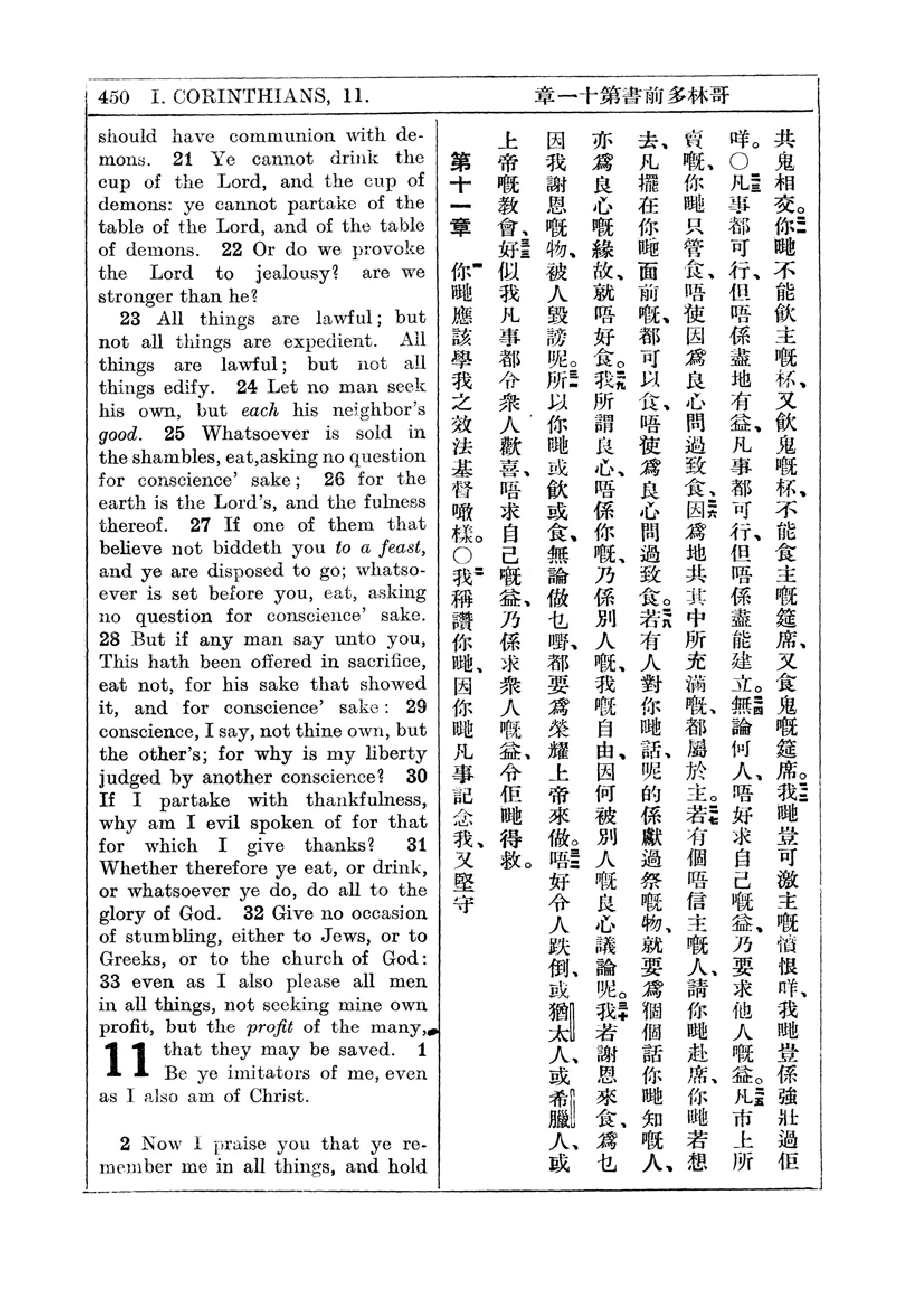 1927年新约全书(中英对照) 哥林多前书 10 章 21 节到 11 章 2 节