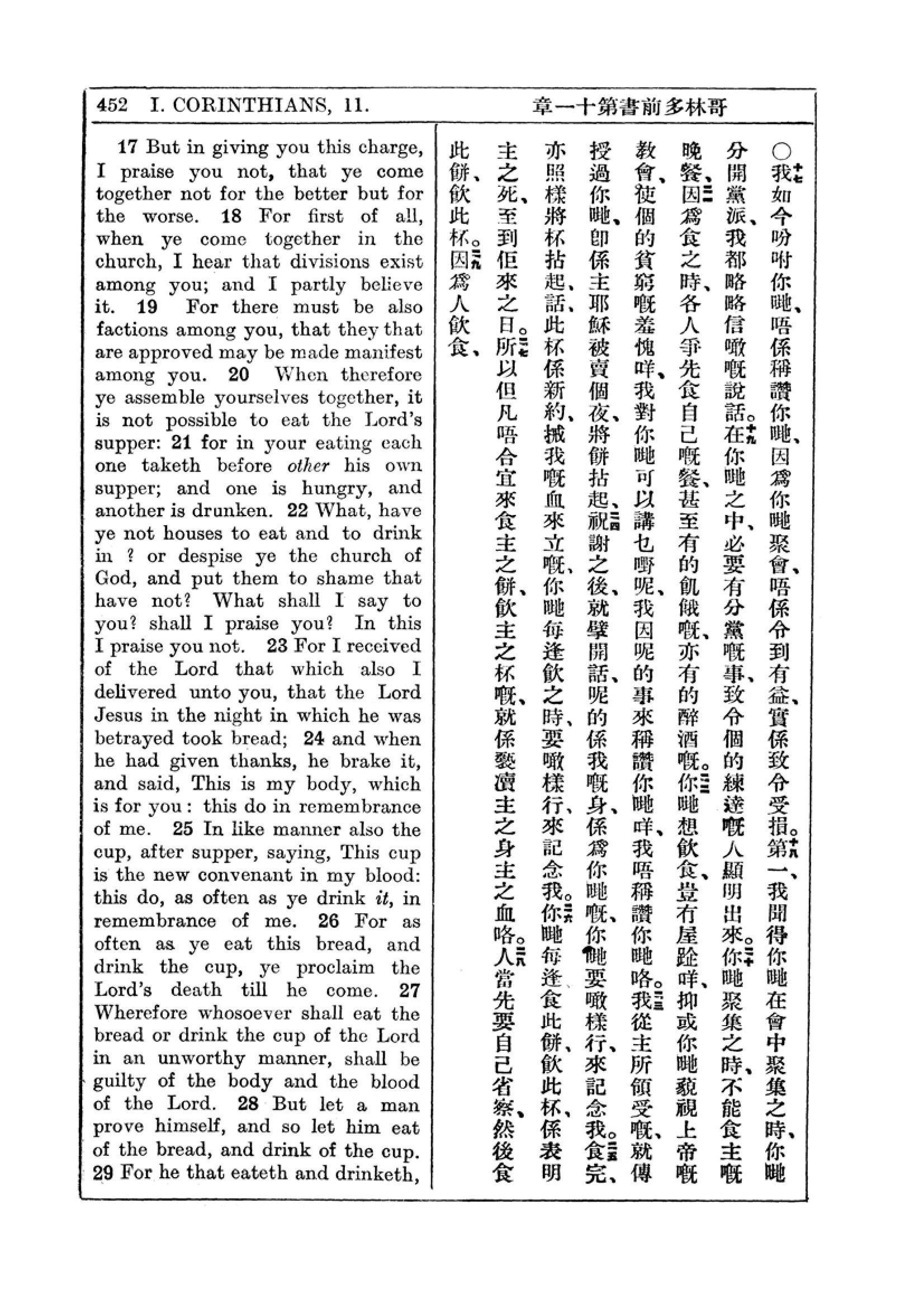1927年新约全书(中英对照) 哥林多前书 11 章 17 节到 11 章 29 节