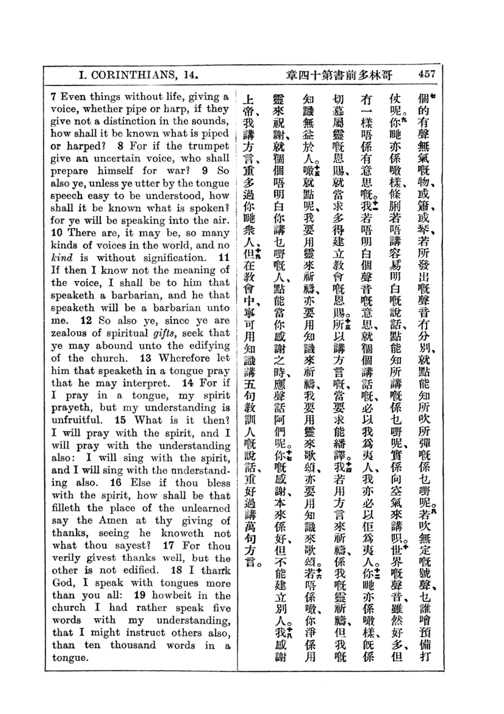 1927年新约全书(中英对照) 哥林多前书 14 章 7 节到 14 章 19 节