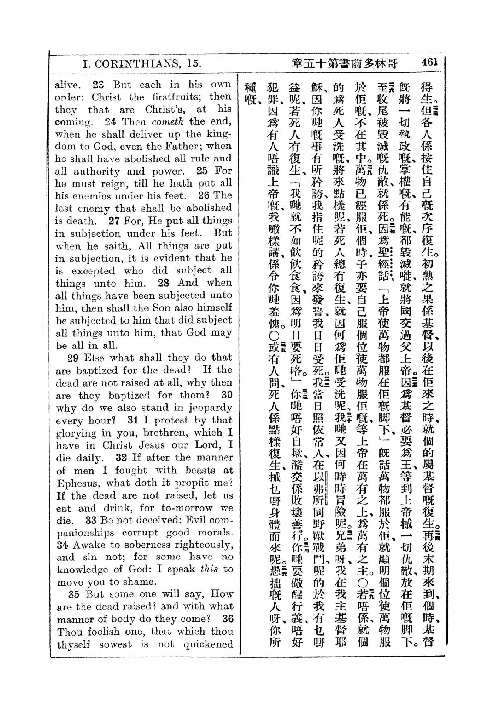 1927年新约全书(中英对照) 哥林多前书 15 章 23 节到 15 章 36 节