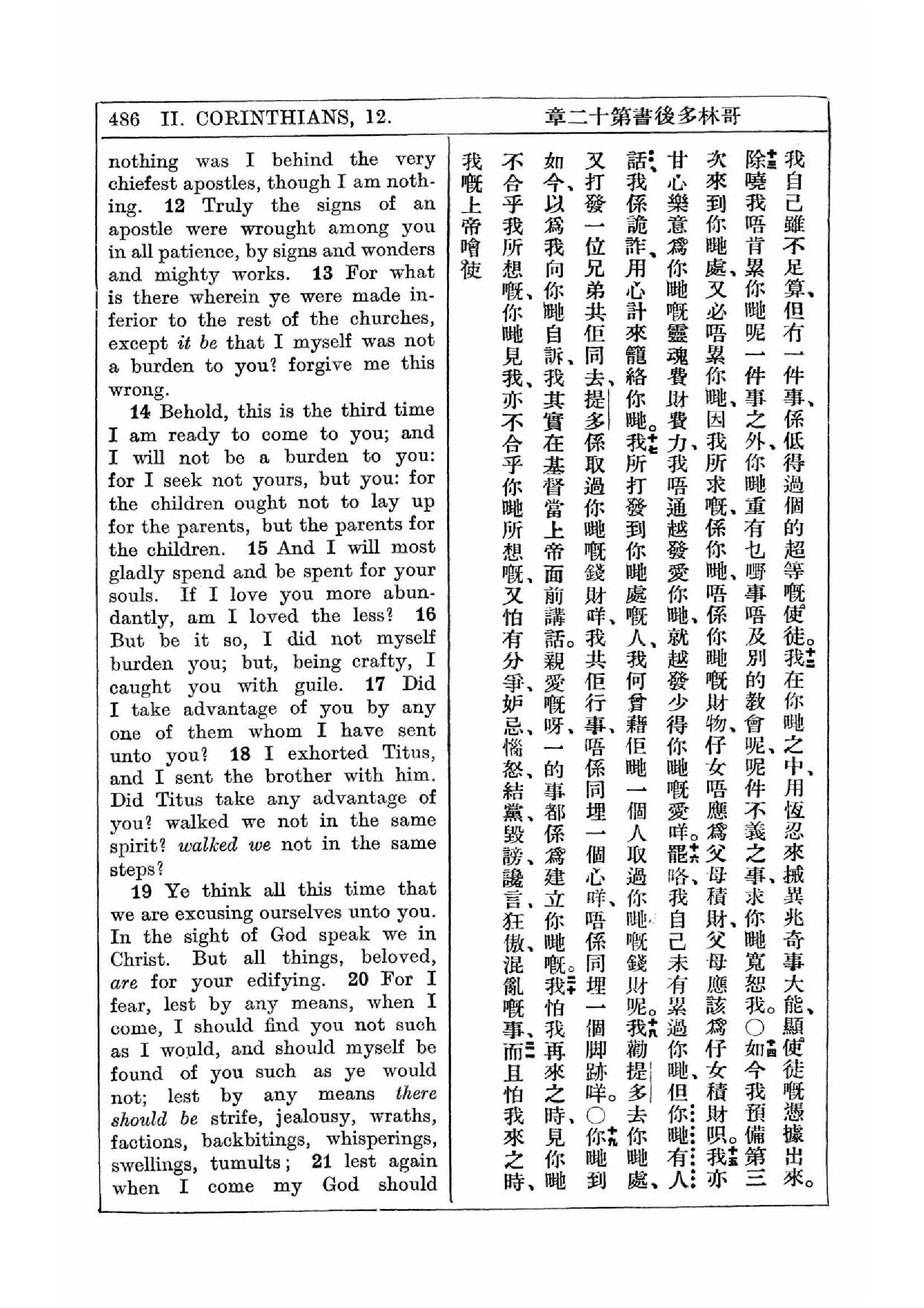 1927年新约全书(中英对照) 哥林多后书 12 章 12 节到 12 章 21 节