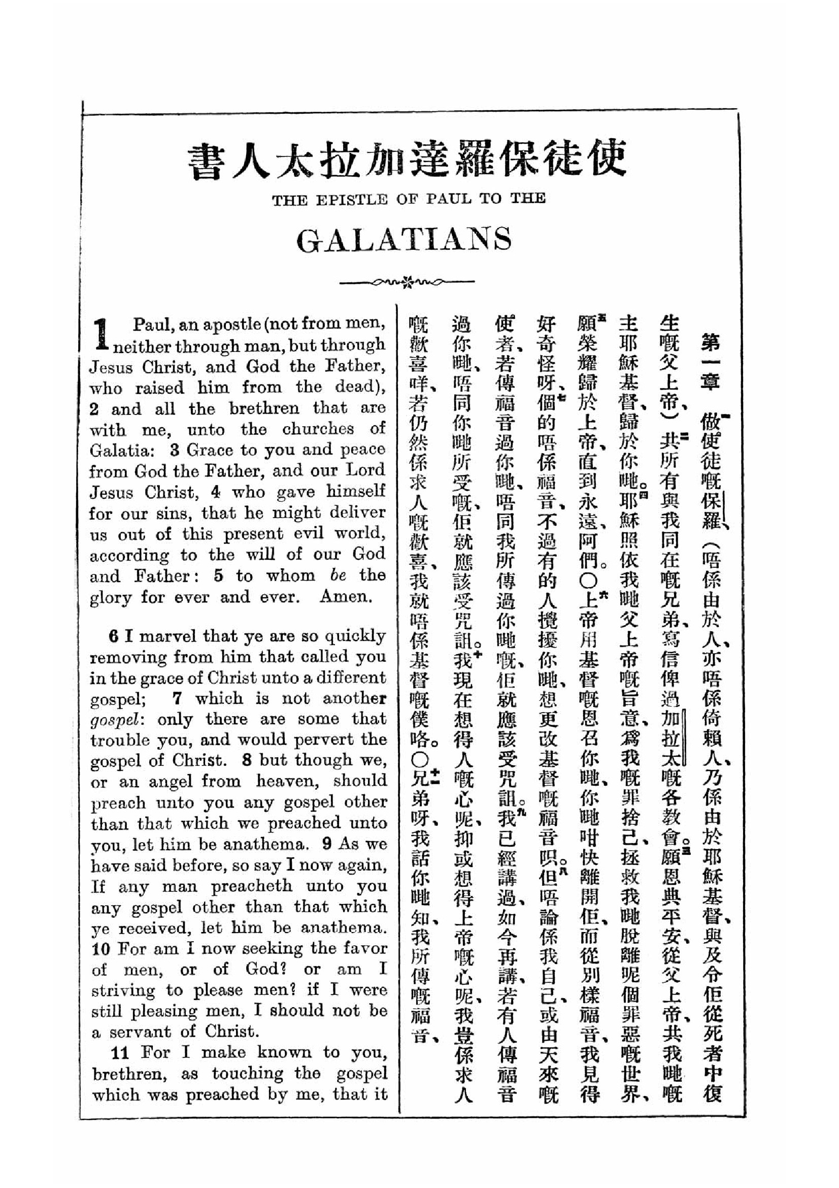 1927年新约全书(中英对照) 加拉太书 1 章 1 节到 1 章 11 节