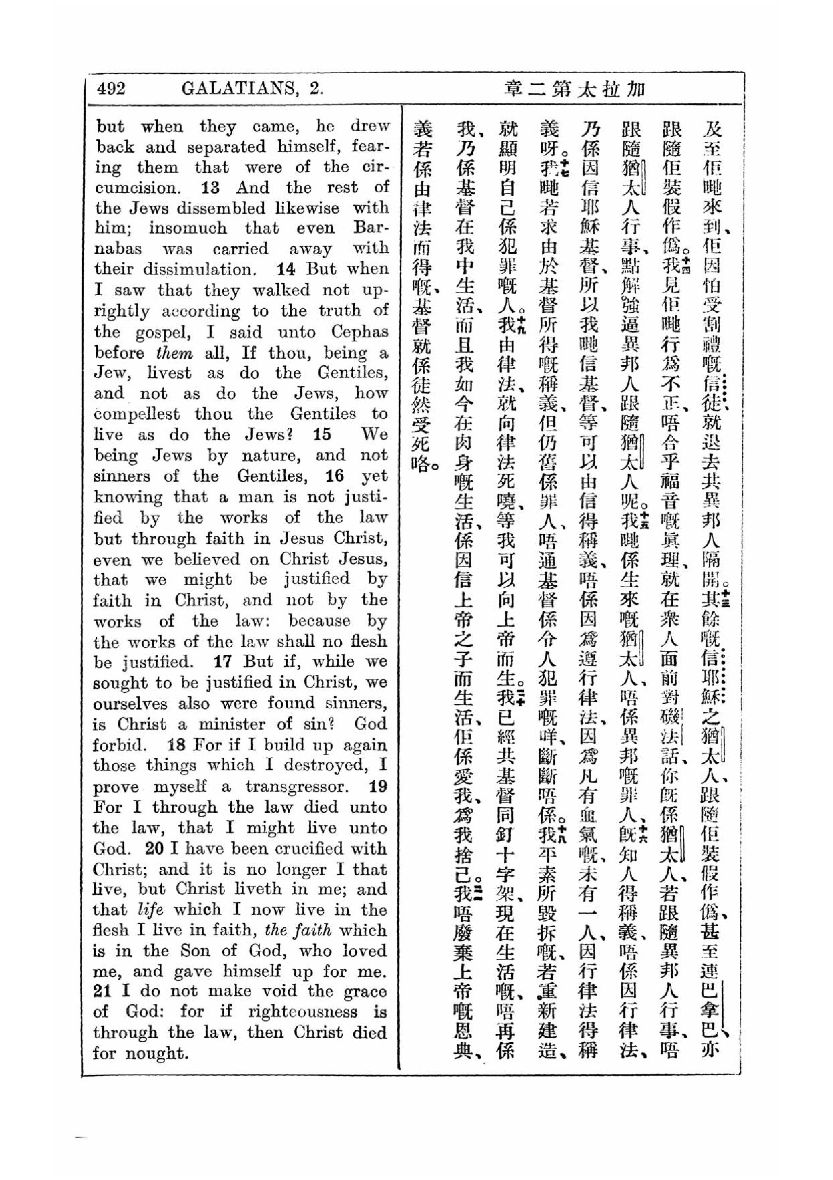 1927年新约全书(中英对照) 加拉太书 2 章 13 节到 2 章 21 节