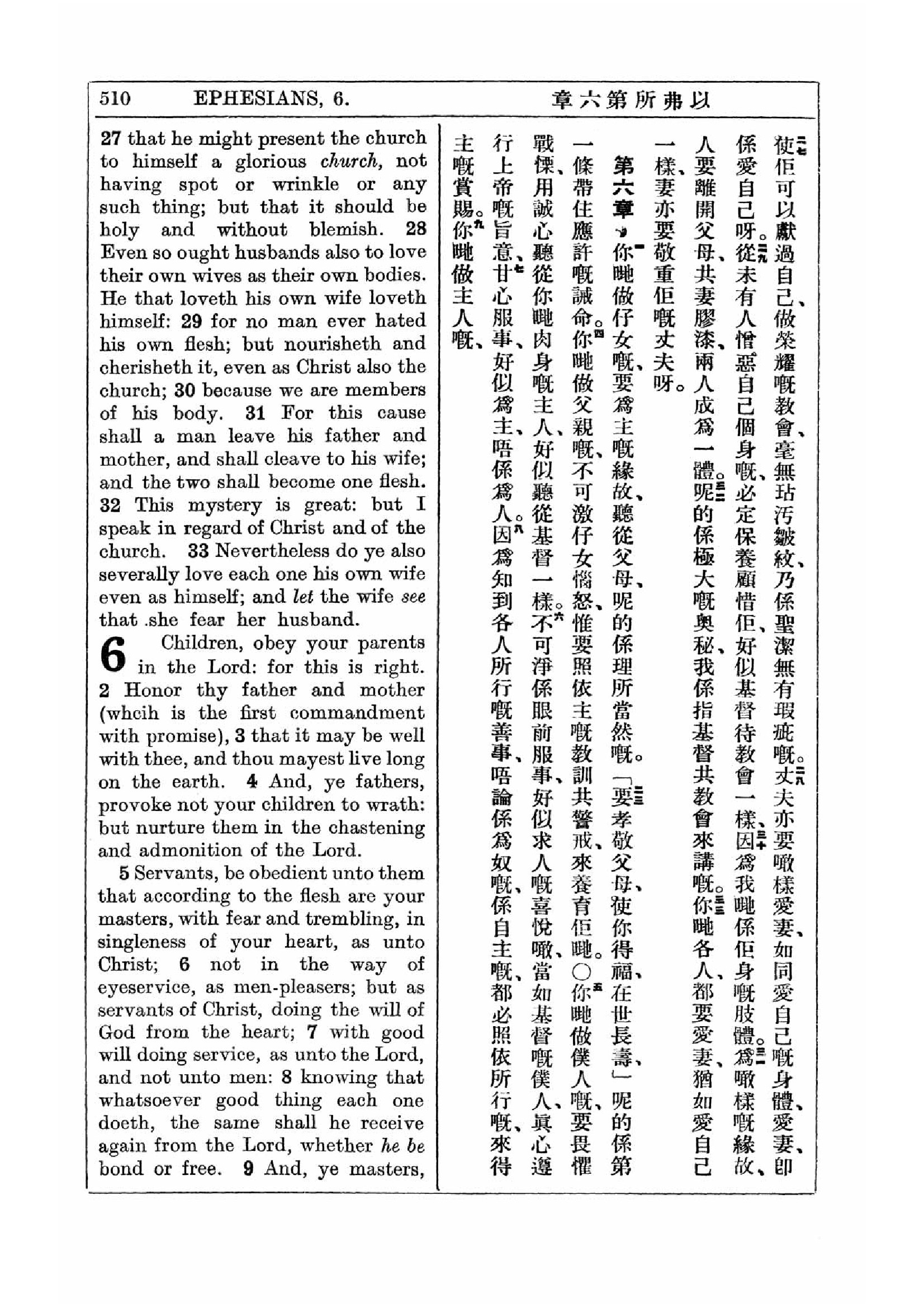 1927年新约全书(中英对照) 以弗所书 5 章 27 节到 6 章 8 节