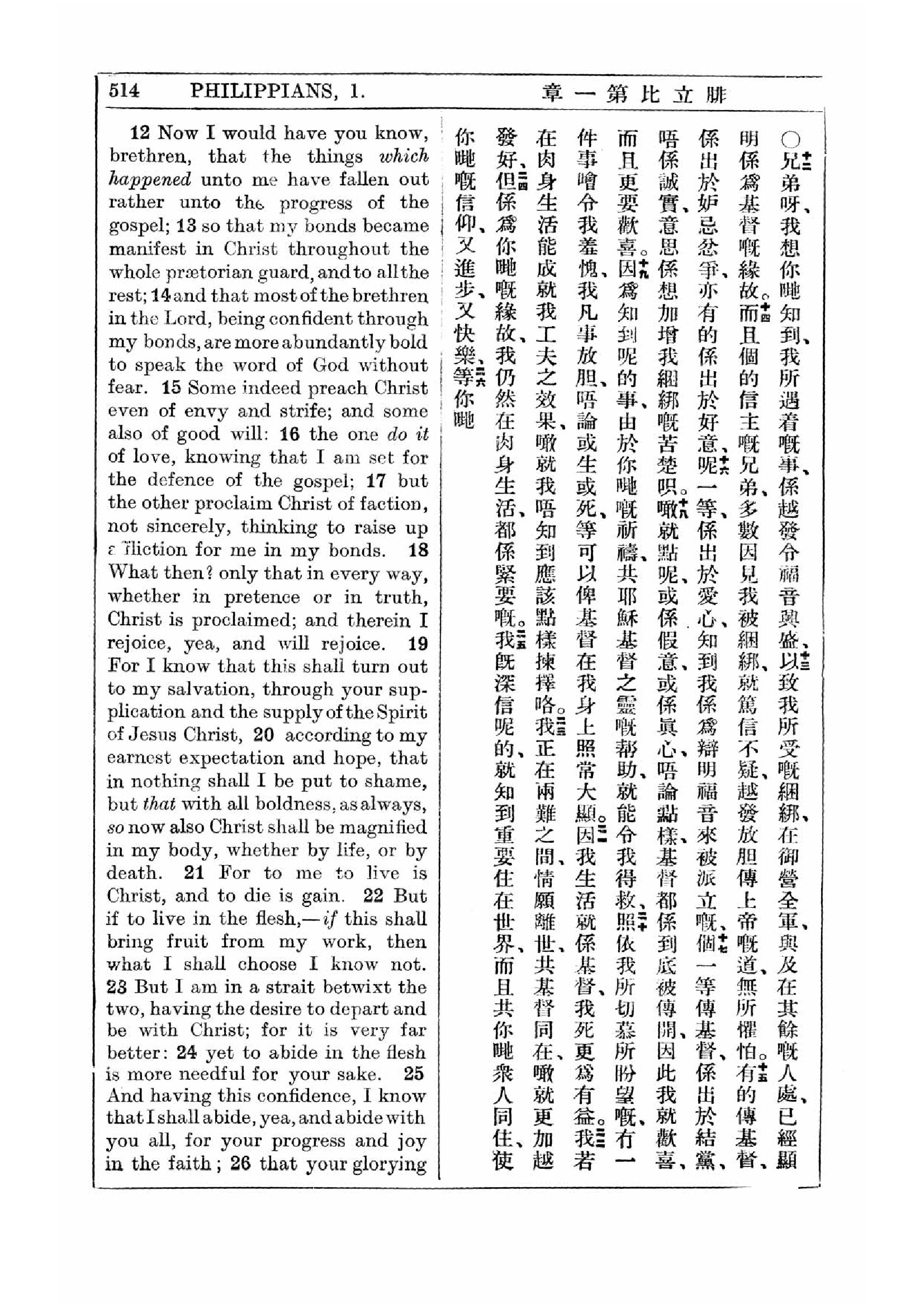 1927年新约全书(中英对照) 腓立比书 1 章 12 节到 1 章 26 节