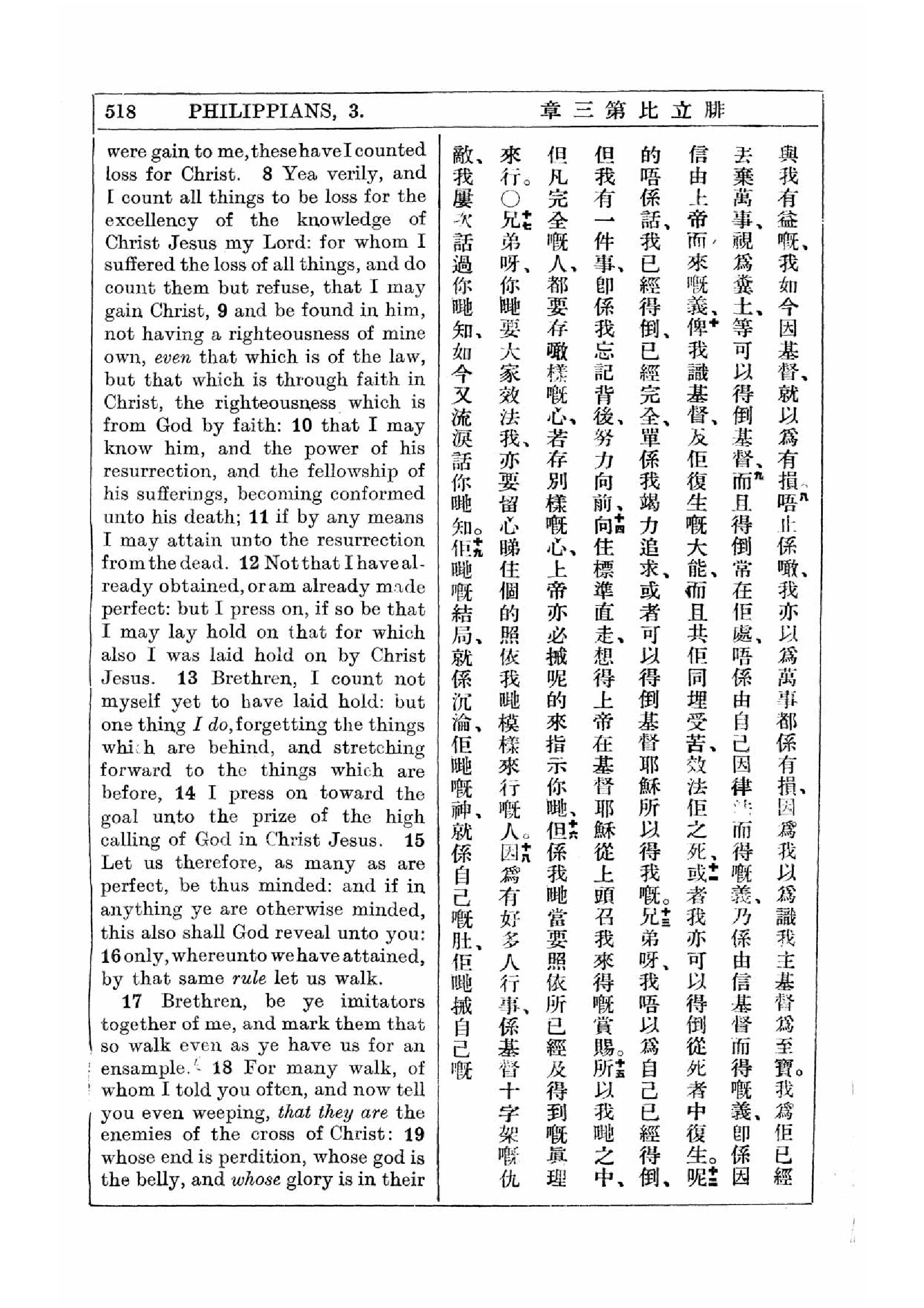 1927年新约全书(中英对照) 腓立比书 3 章 8 节到 3 章 19 节