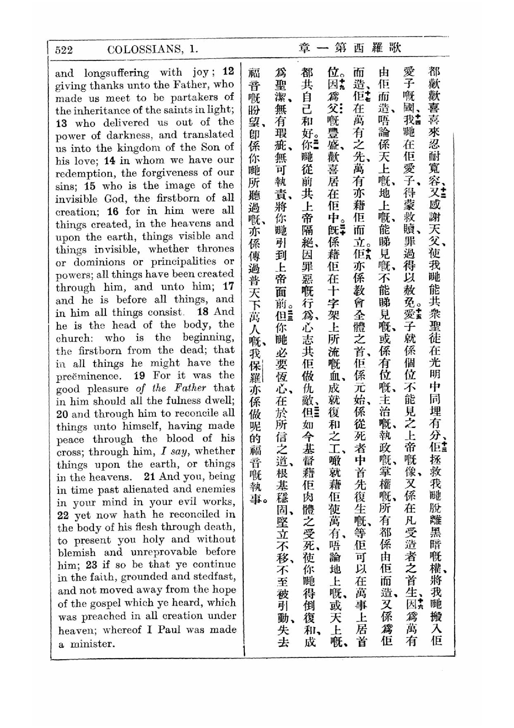 1927年新约全书(中英对照) 歌罗西书 1 章 12 节到 1 章 23 节