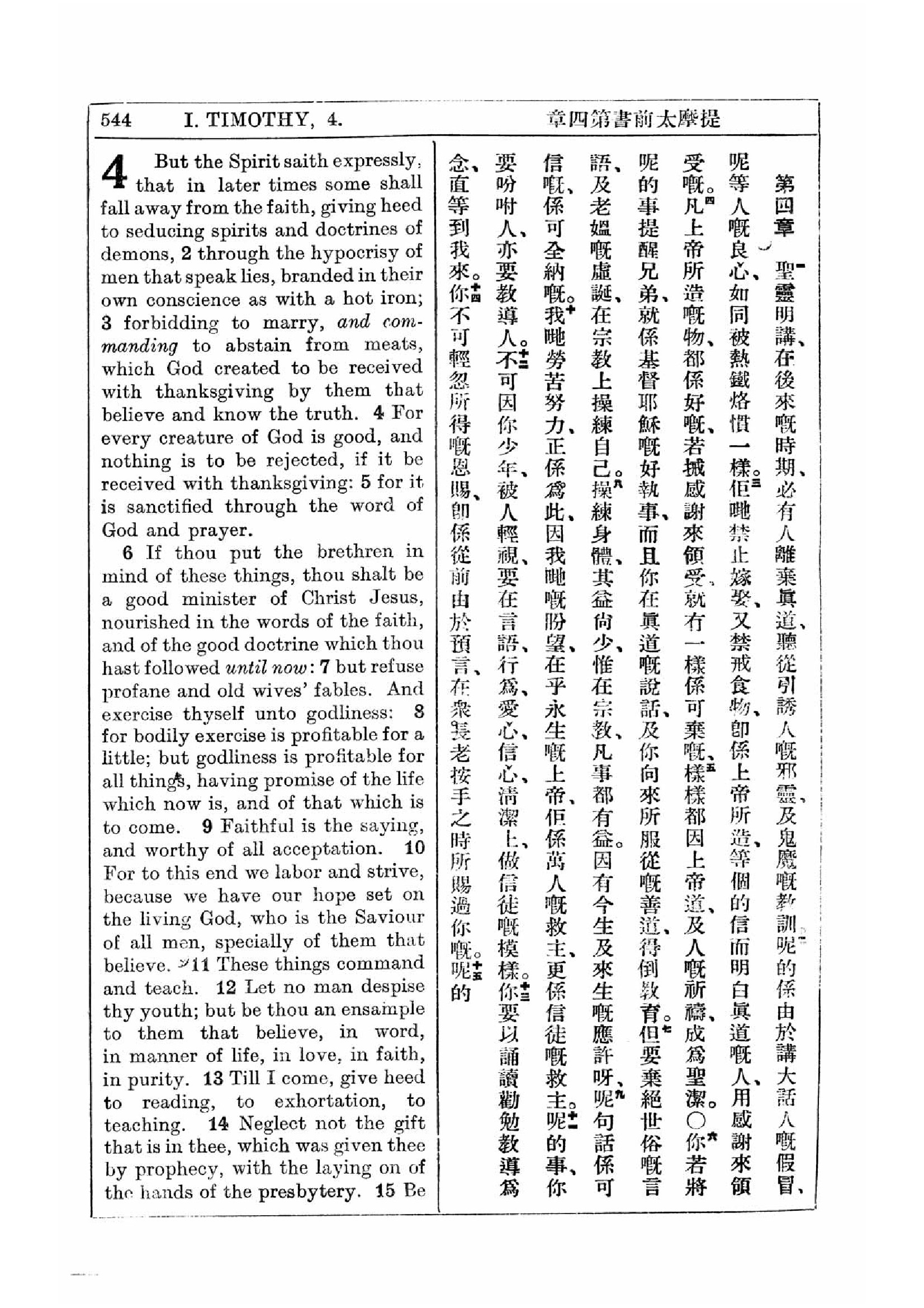 1927年新约全书(中英对照) 提摩太前书 4 章 1 节到 4 章 14 节