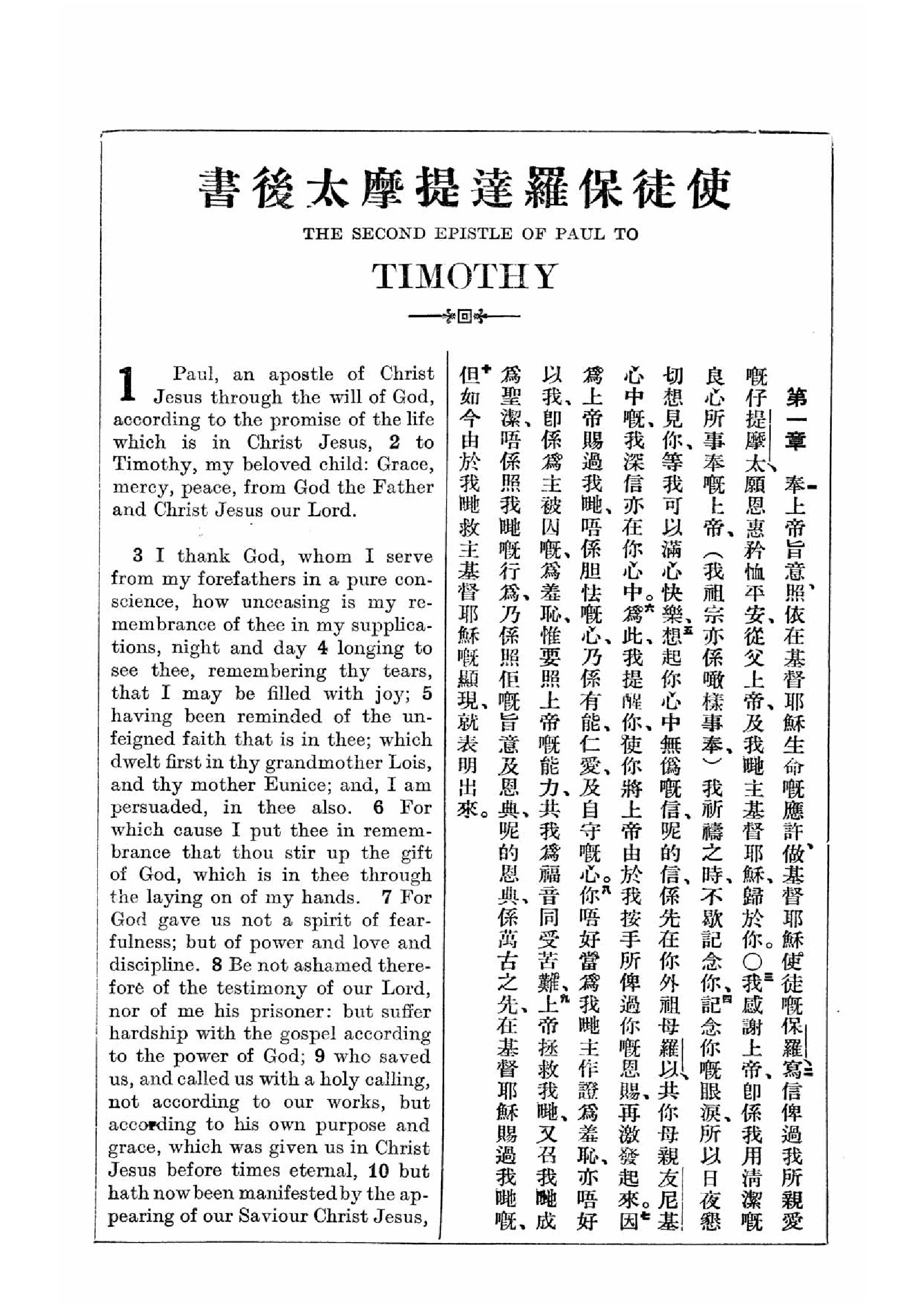1927年新约全书(中英对照) 提摩太后书 1 章 1 节到 1 章 10 节