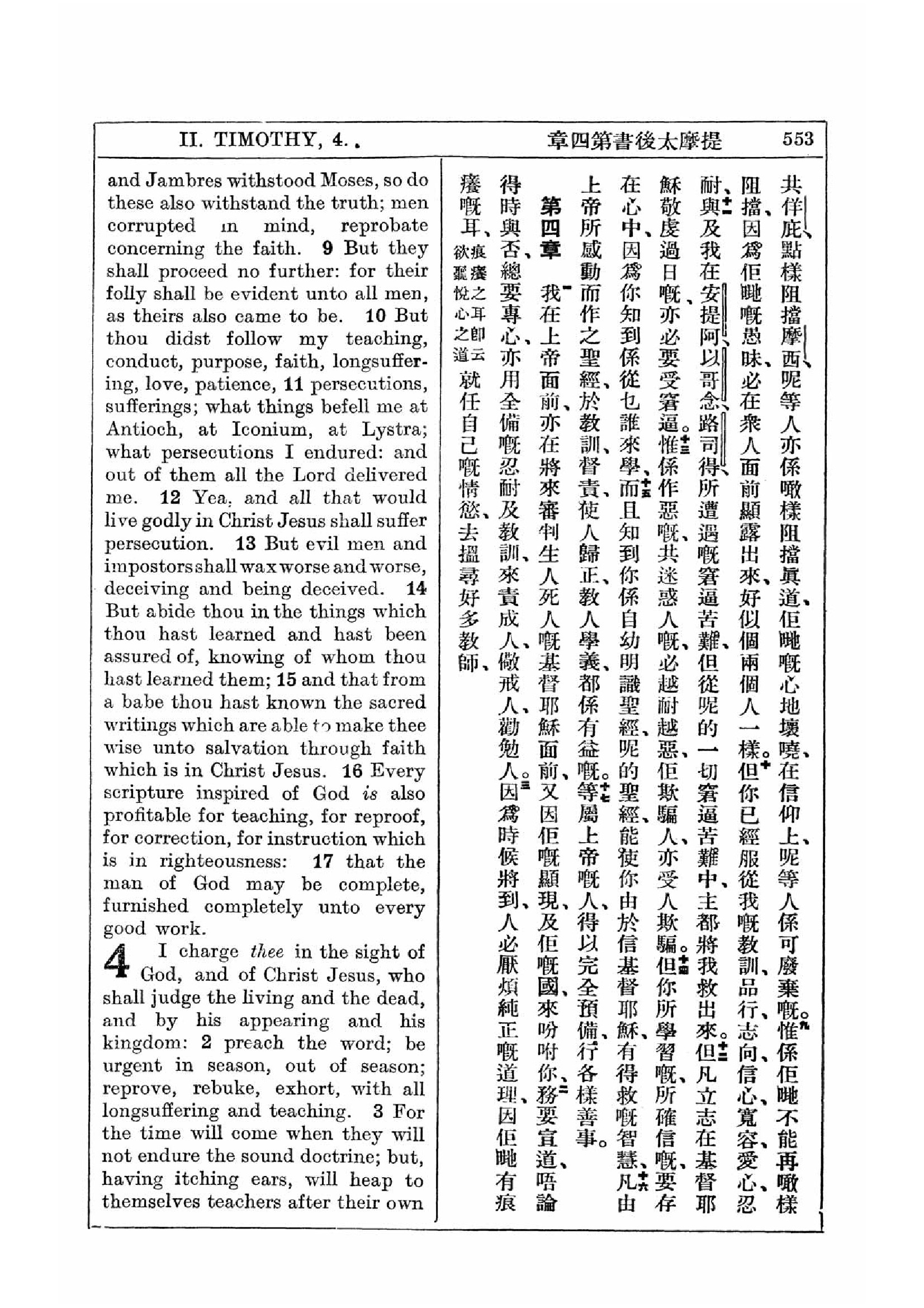 1927年新约全书(中英对照) 提摩太后书 3 章 8 节到 4 章 3 节