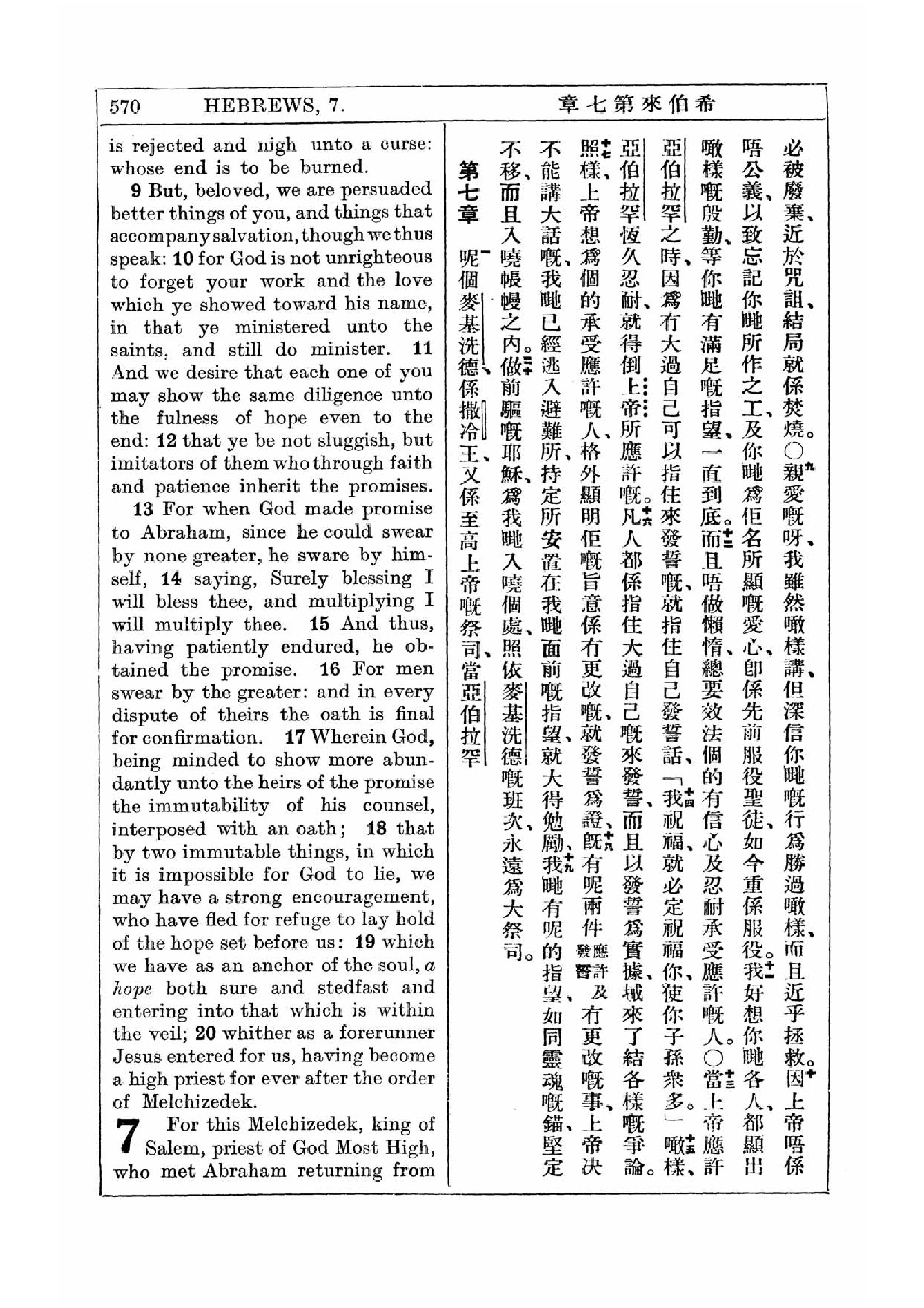 1927年新约全书(中英对照) 希伯来书 6 章 9 节到 7 章 1 节