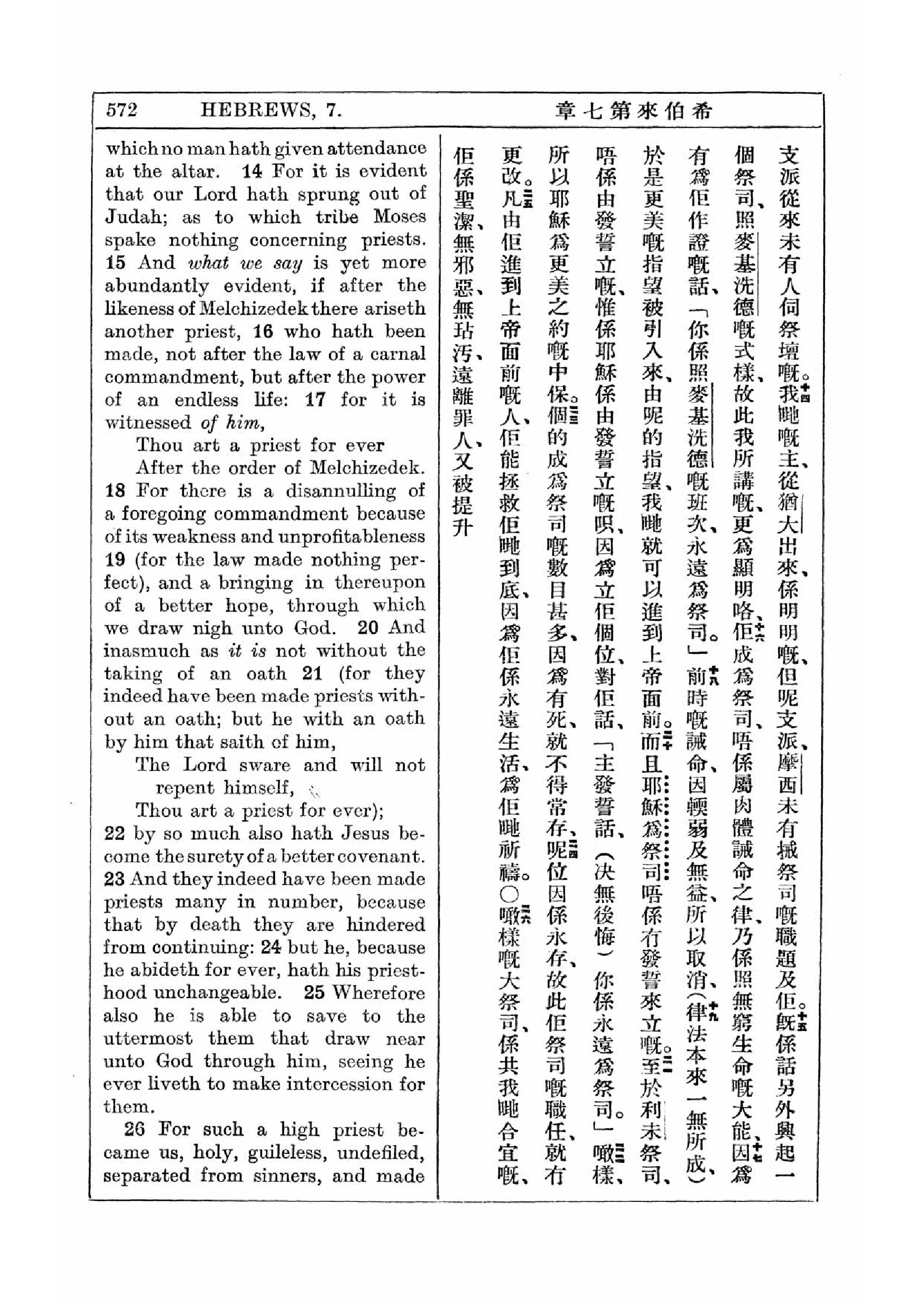 1927年新约全书(中英对照) 希伯来书 7 章 14 节到 7 章 26 节